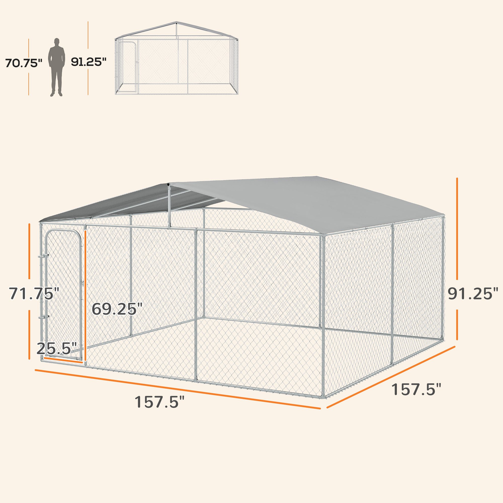 Dog Kennel Outdoor Dog Run w/ Canopy, 13' x 13' x 7.5'