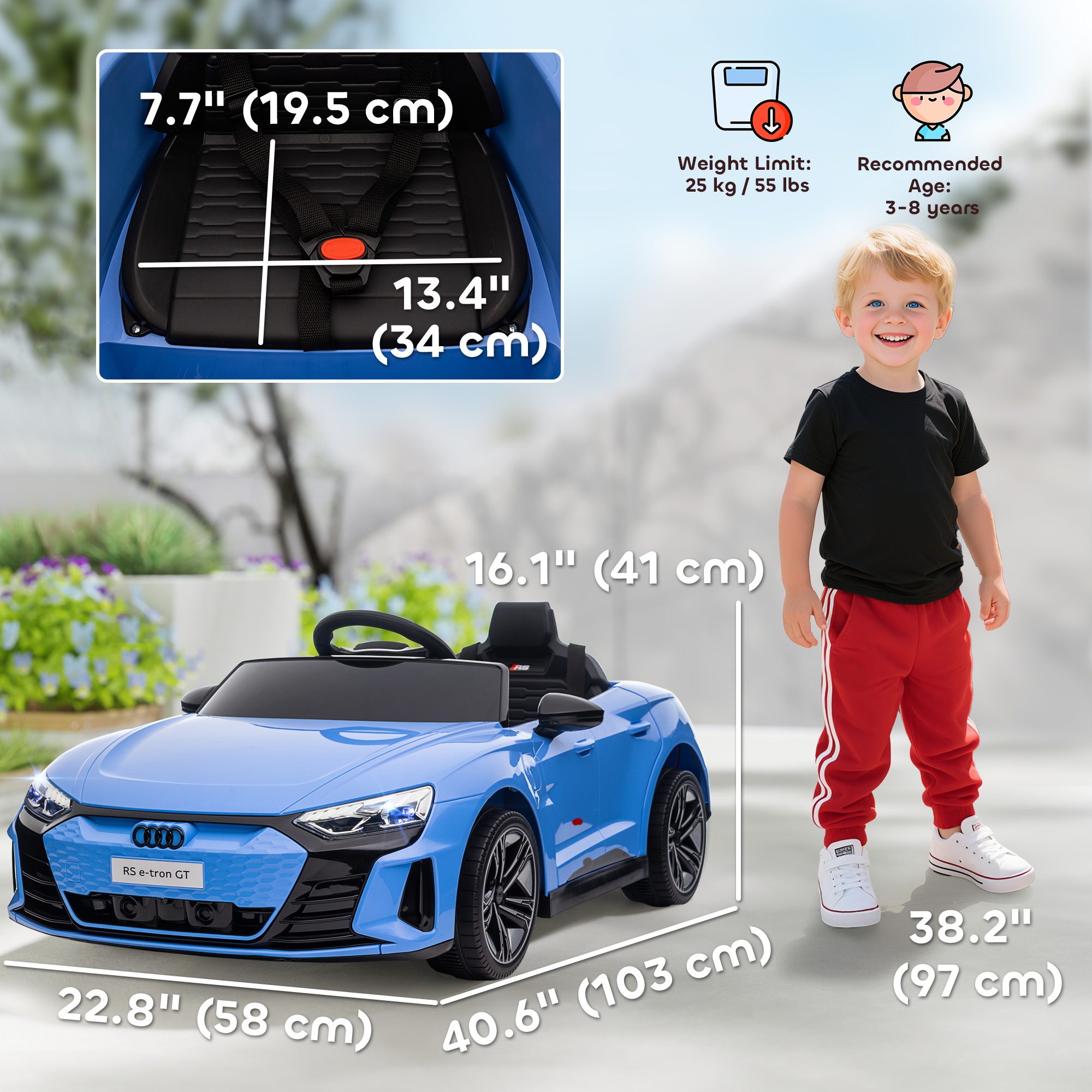 Electric Car for Kids, 12V Licensed Audi RS E-tron GT 3.1 MPH Kids Ride on Car, Ride-on Toy with Remote Control, 4 Suspension Wheels, Horn, Music, Lights, for Boys and Girls, Blue