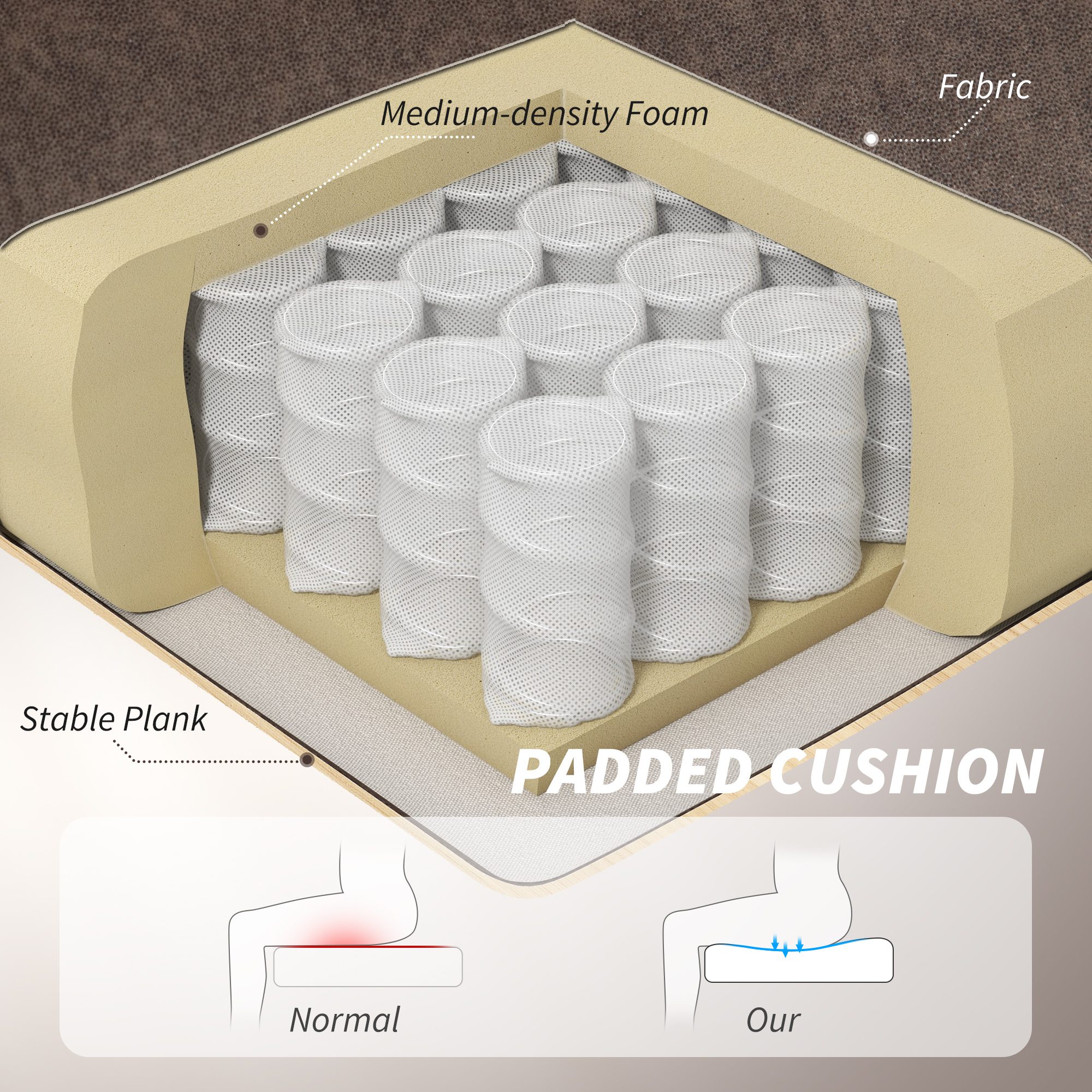 • – Double-tier high-density foam padding ensures superior sitting comfort