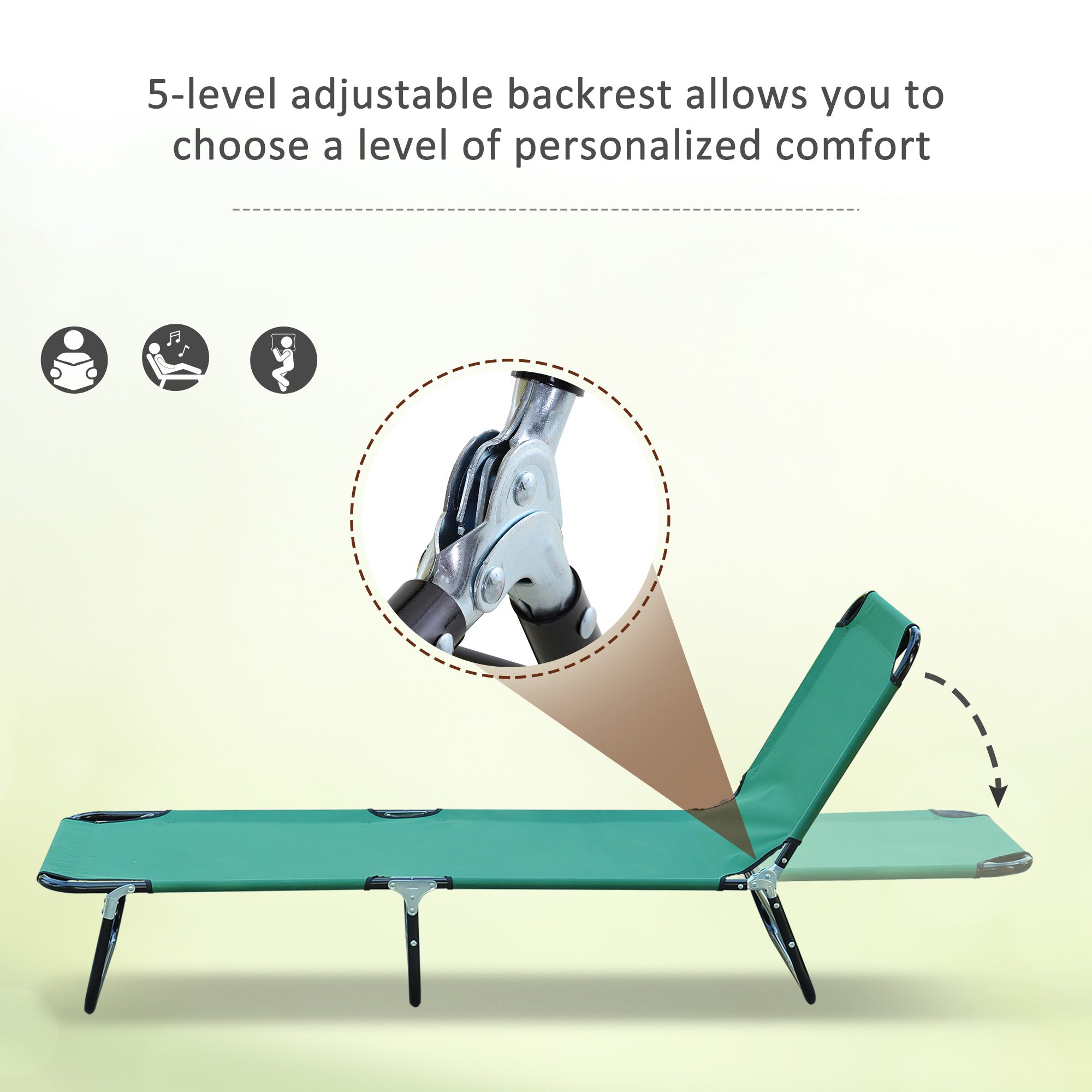 Folding Patio Lounge Chair, Outdoor Sun Tanning Chair, 5-level Adjustable Back, Chaise Pool Breathable Chair with Steel Frame, for Beach, Yard, Green
