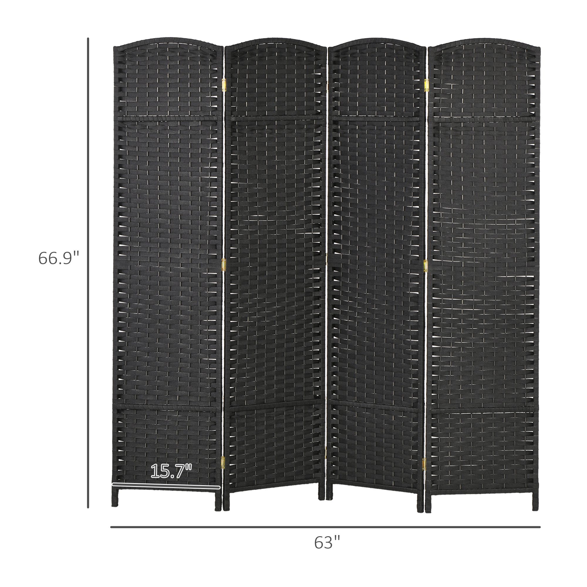 Folding Room Divider Screen 4 Panel 5.6 ' Tall Privacy Screen Freestanding Room Partition for Home Office, Black