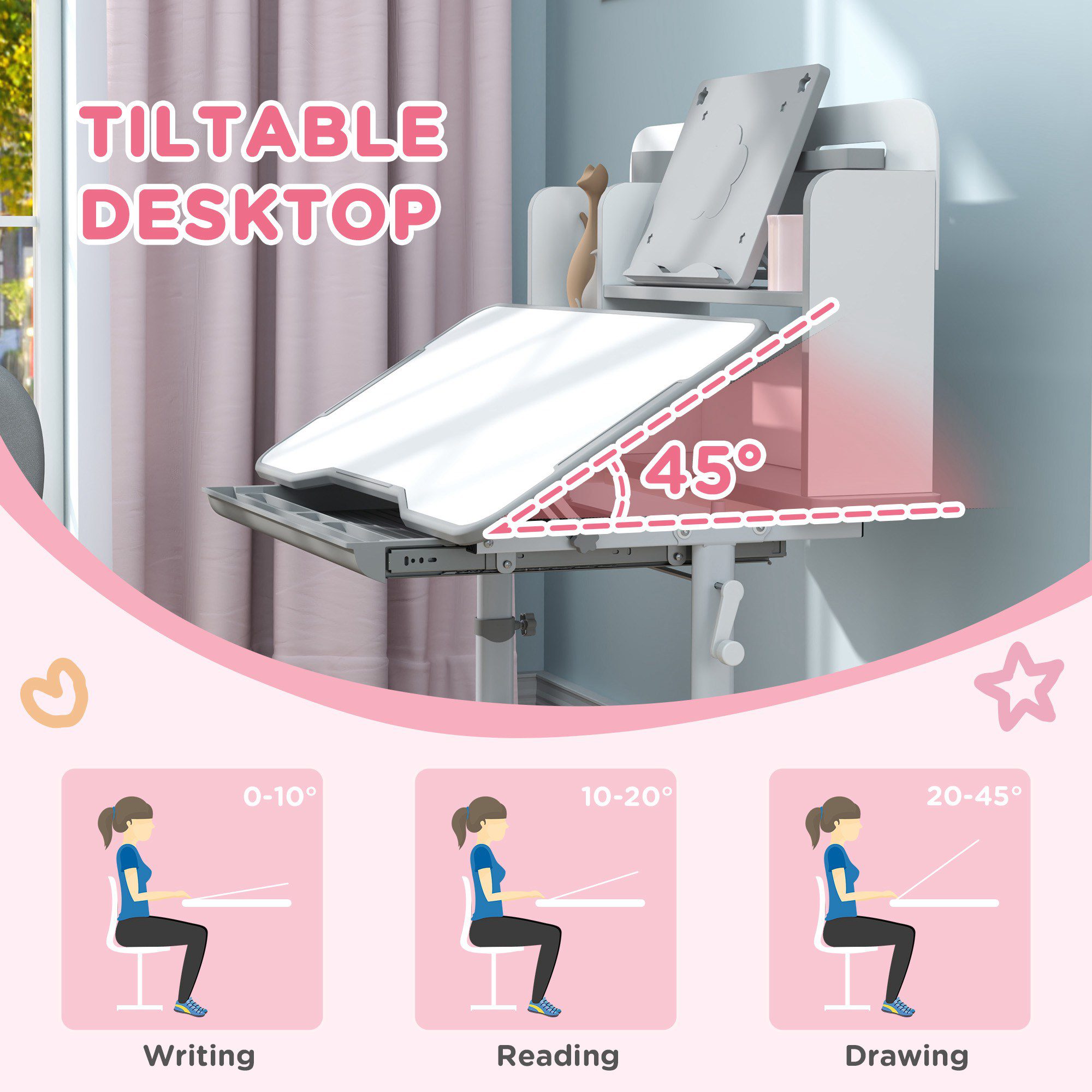Discover the kids desk and chair set, crafted with an MDF tabletop and strong steel legs. The spacious surface tilts from 0-45° for optimal posture, while adjustable anti-slip foot pads ensure stability. Great for everything from art projects to homework, this student desk and chair set is a must-have for any young student’s study space.