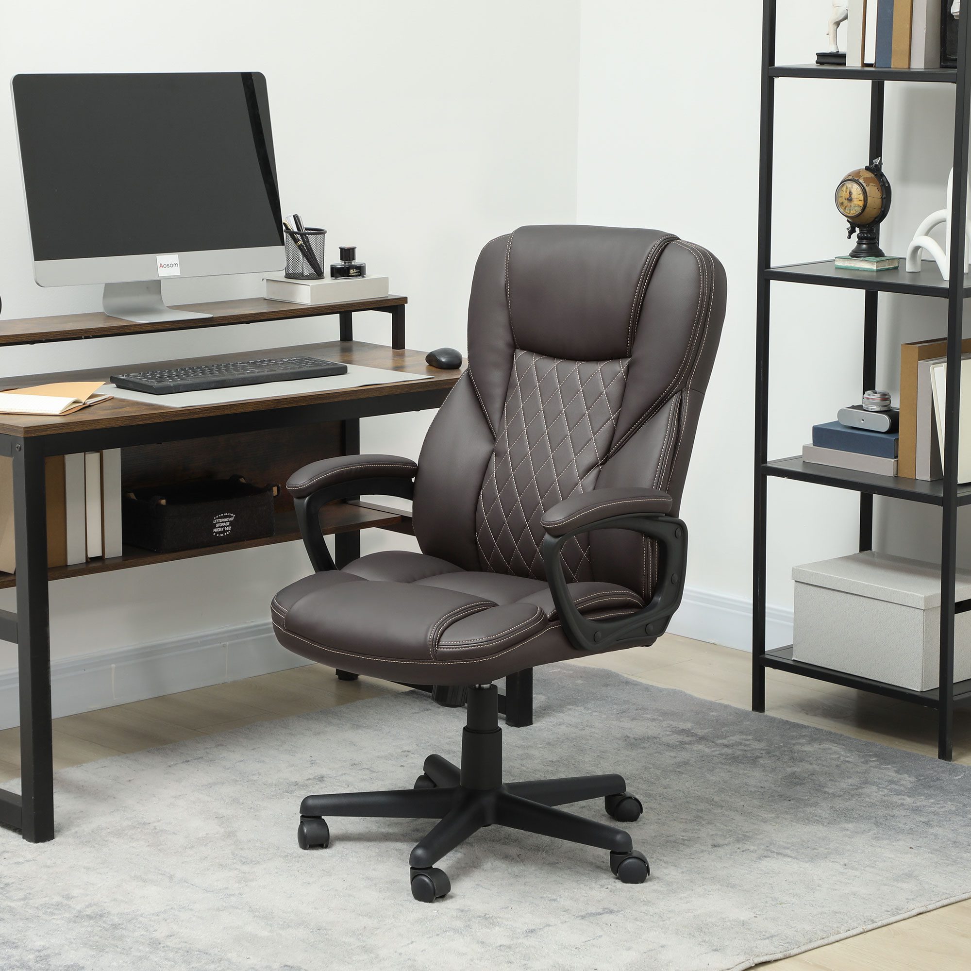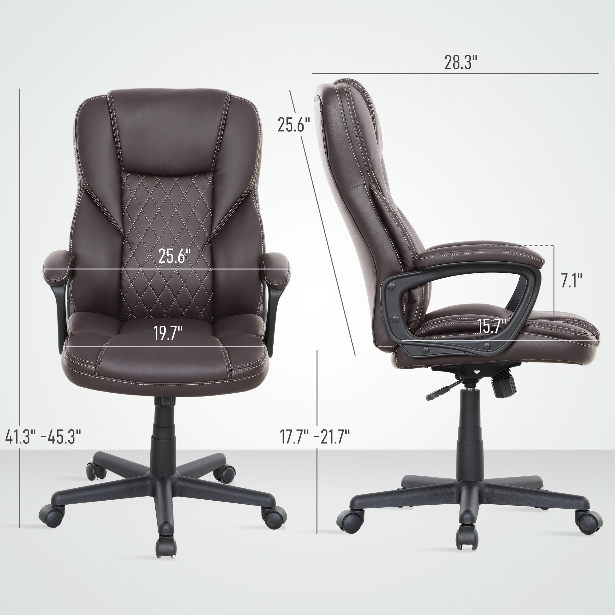 Transform your workspace with the home office chair from [BRAND NAME], where ergonomic design meets luxury. This comfy desk chair cradles your body with a curved high back and thick padded cushions, ensuring comfort throughout your workday. Enjoy the ease of the tilt mechanism and customizable height for a seamless transition from intense focus to relaxation. Wrapped in luxurious and easy-to-clean PU leather, the [BRAND NAME] comfortable office chair is a great upgrade for any home office.