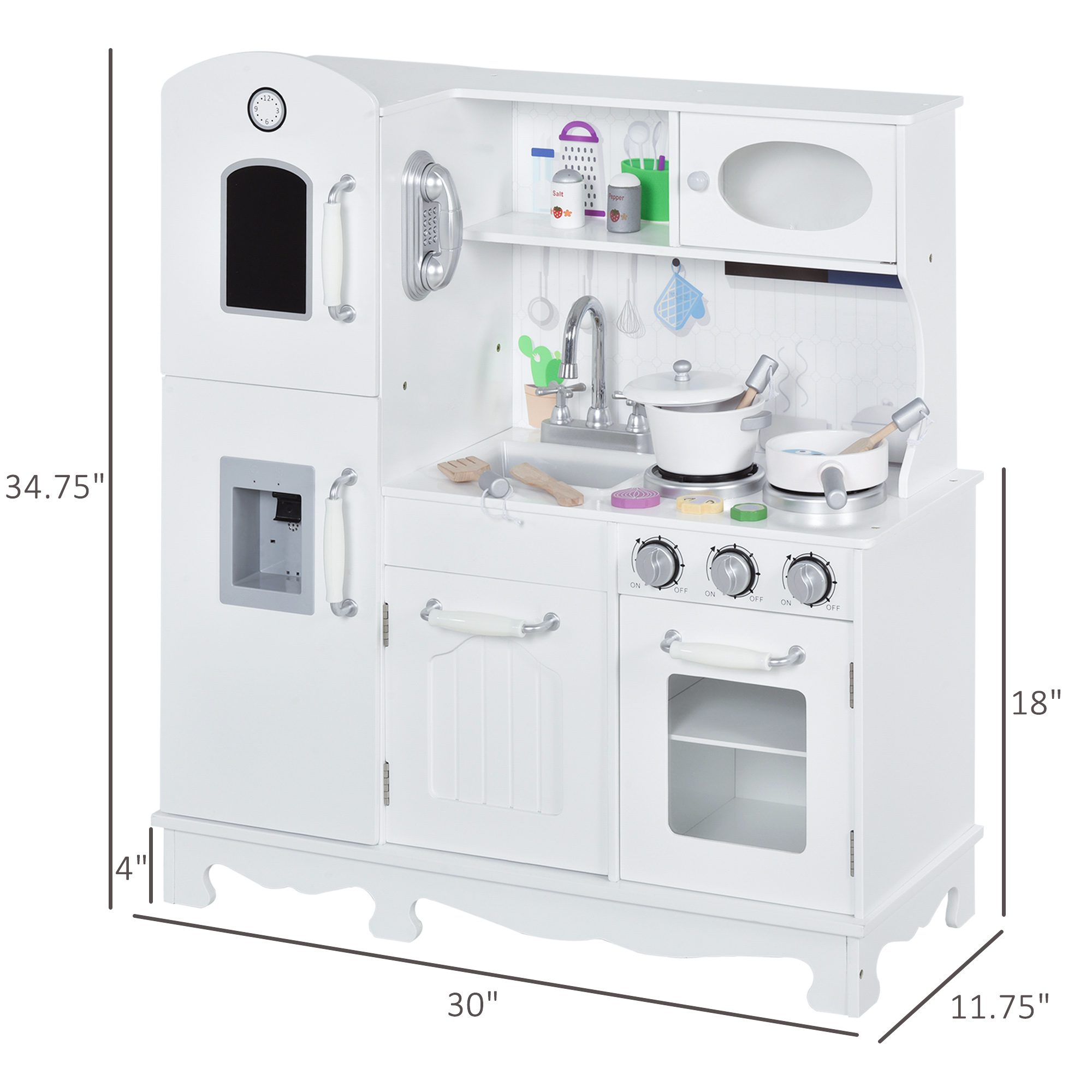 Kids Kitchen Playset with Telephone, Wooden Kitchenette for kids with Cookware, Storage Cabinet, Water Dispenser, Blackboard, Toddler Pretend Play Kitchen with Cooking Accessories for Aged 3+
