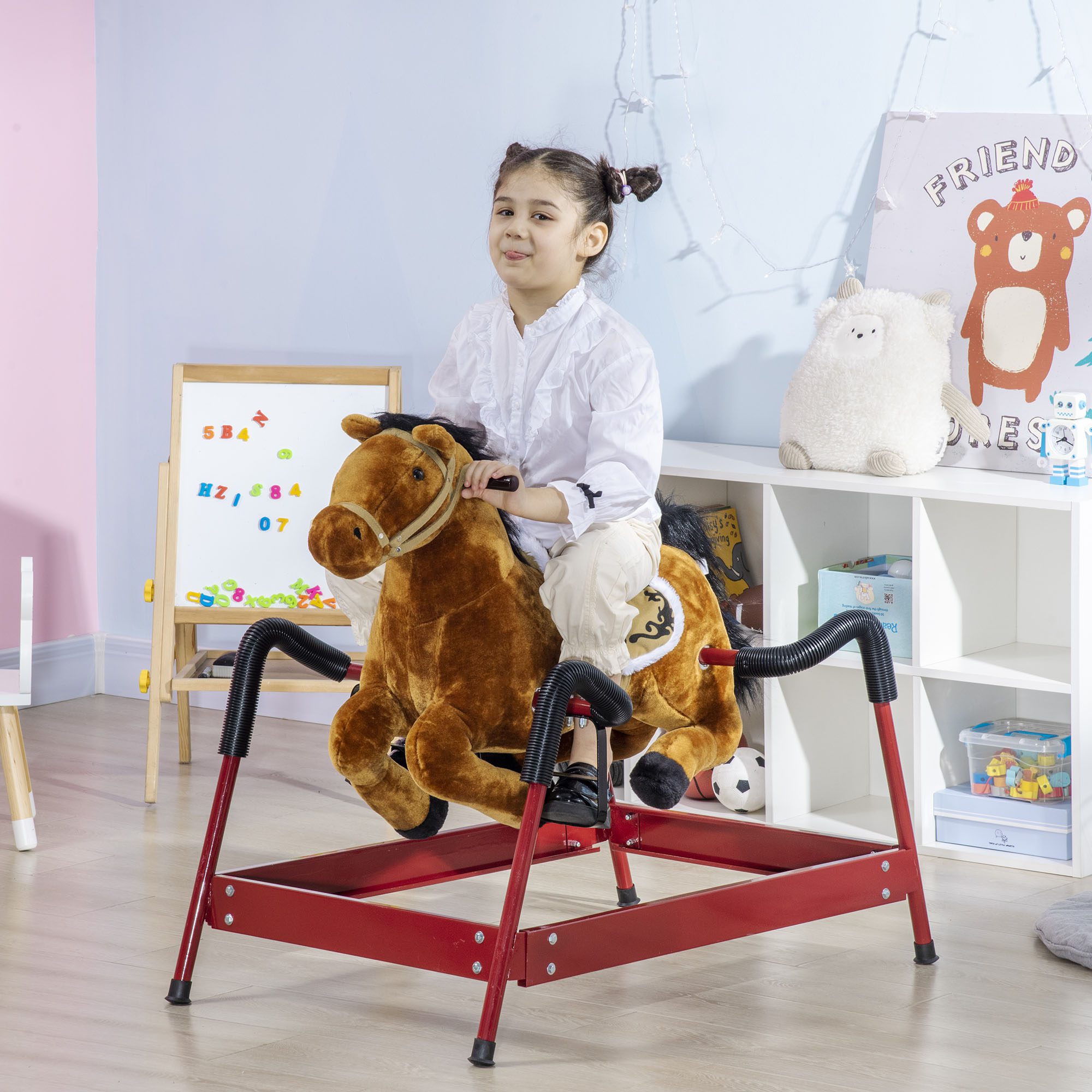 Kids Spring Rocking Horse, Ride on Horse for Girls and Boys with Animal Sounds, Plush Animal Ride-on Toy with Soft Feel, Interactive Toy for Kids, Light Brown
