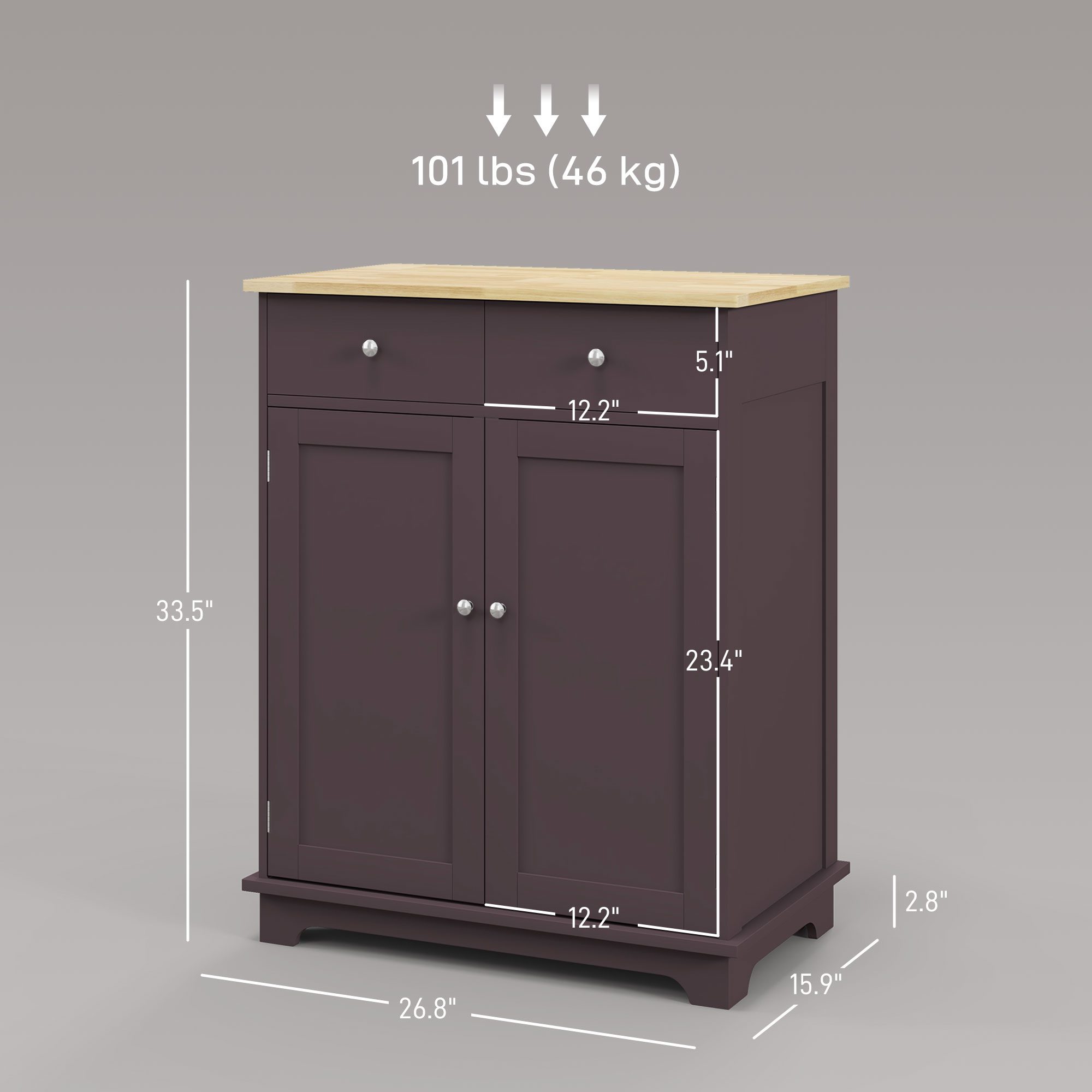 Kitchen Storage Cabinet, Sideboard Floor Cupboard with Solid Wood Top, Adjustable Shelf, and 2 Drawers, Coffee