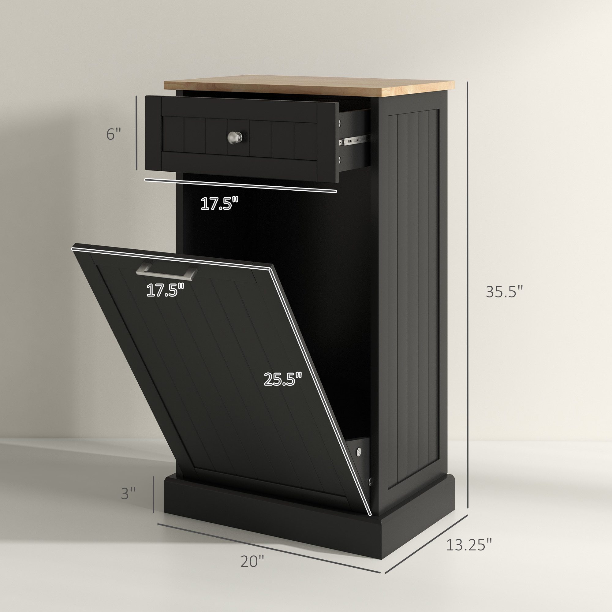 • – Space for Trash Bin: 11.75”W x 11”D x 24.75”H