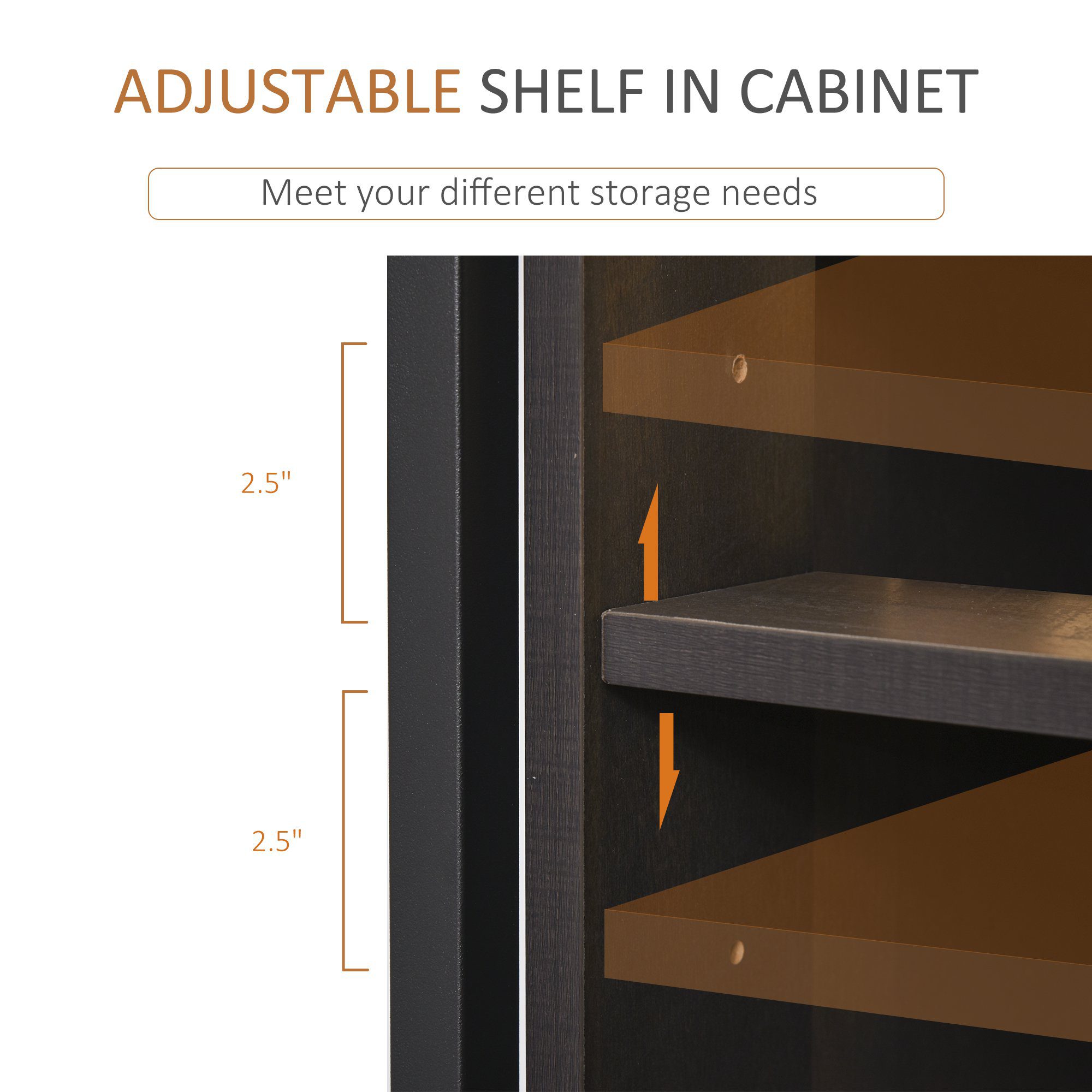 - – An adjustable shelf with 3-level position in the cabinet to meet different storage needs