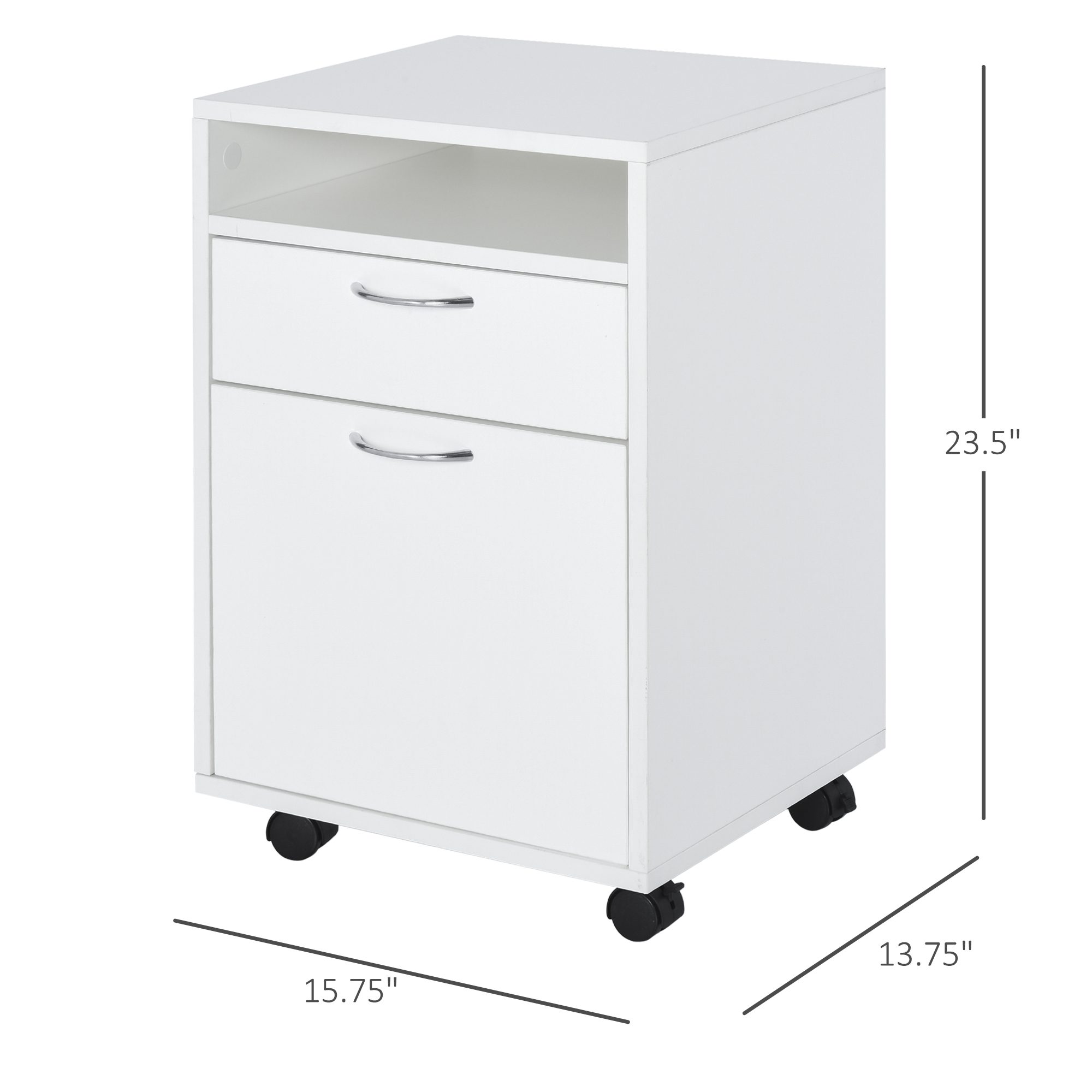 Mobile Storage Cabinet Organizer with Drawer and Cabinet, Printer Stand with Castors, White