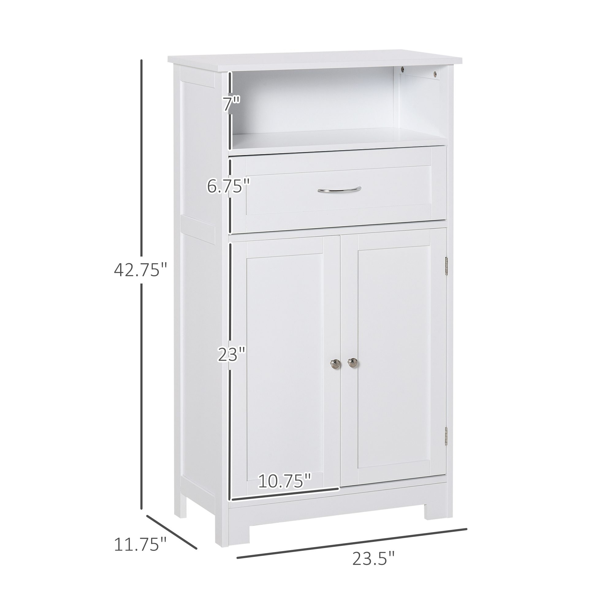 Modern Bathroom Floor Cabinet, Free Standing Storage Cabinet, Linen Cabinet with Drawer and Adjustable Shelf, White