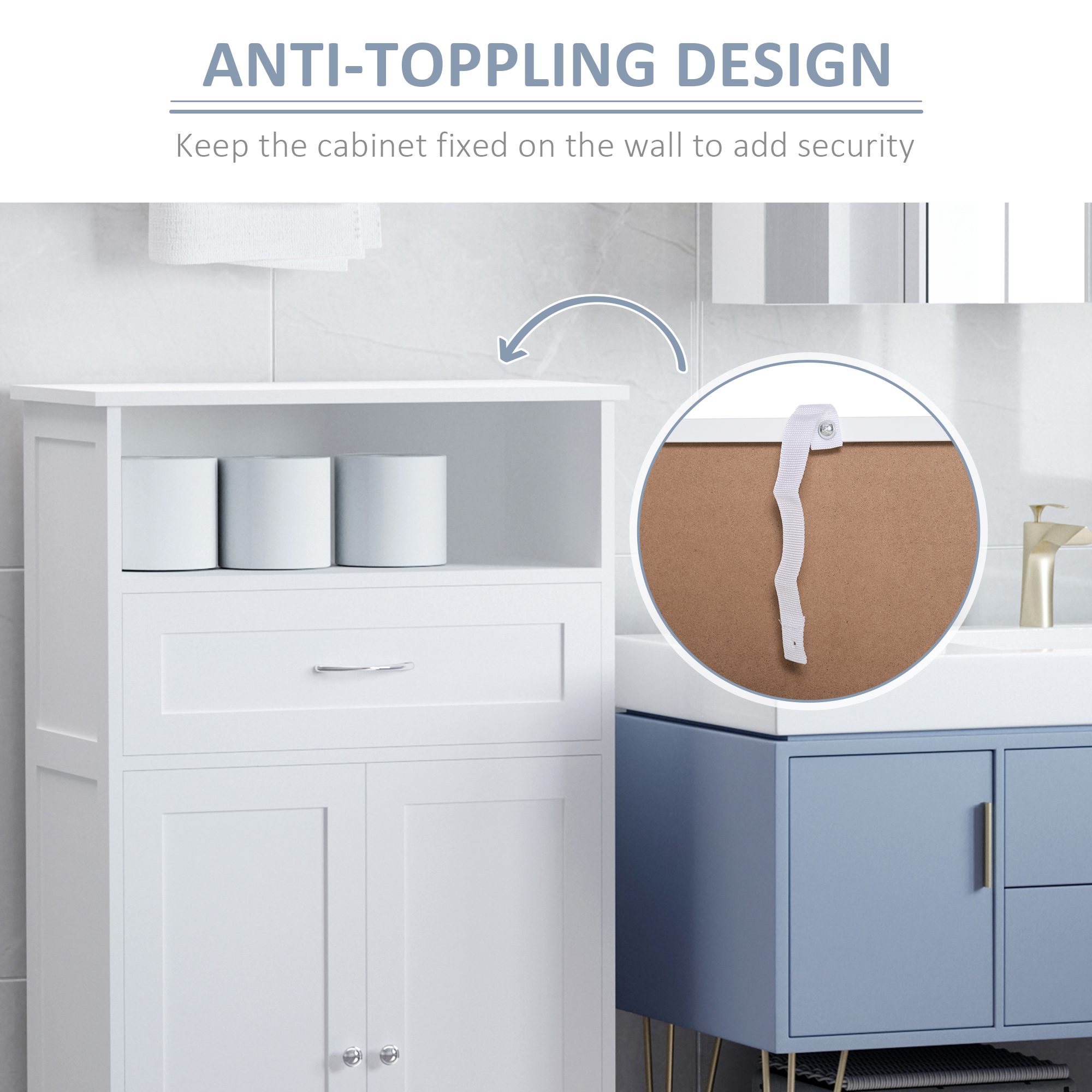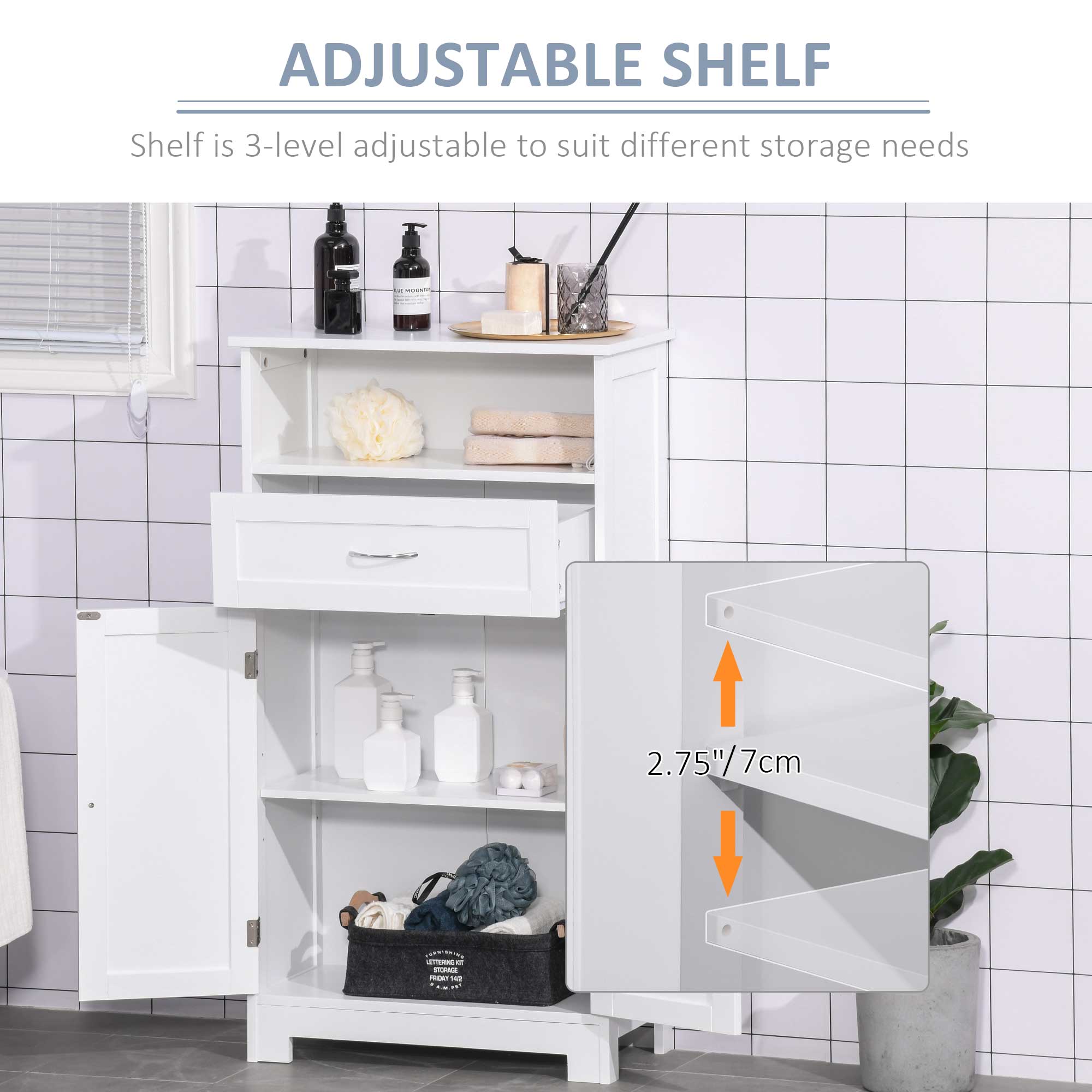 • – With the adjustable shelf inside the storage cabinet, you can customize your storage space yourself
