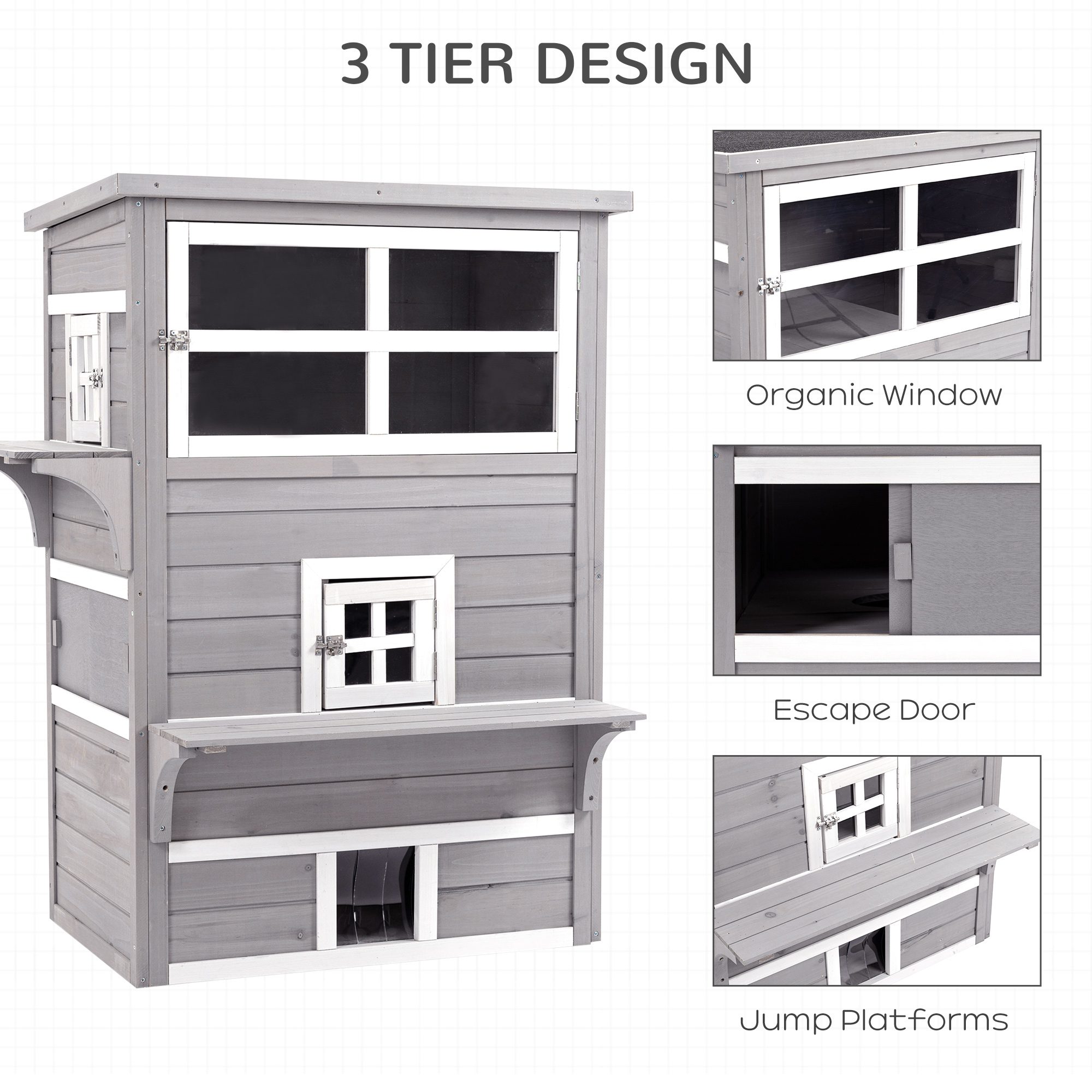 Your cat is sure to enjoy the fun of this outdoor cat house from [BRAND NAME]. They will feel comfortable and secure while also staying out of direct sunlight or light rain. It features an escape entrance, jump platforms, and windows, so your cat can see what’s going on outside. You can put it outdoor or indoors, as it comes with an asphalt eave and the water won’t damage the base. Get your cat a place that feels like home with this outdoor catio shelter from [BRAND NAME].n