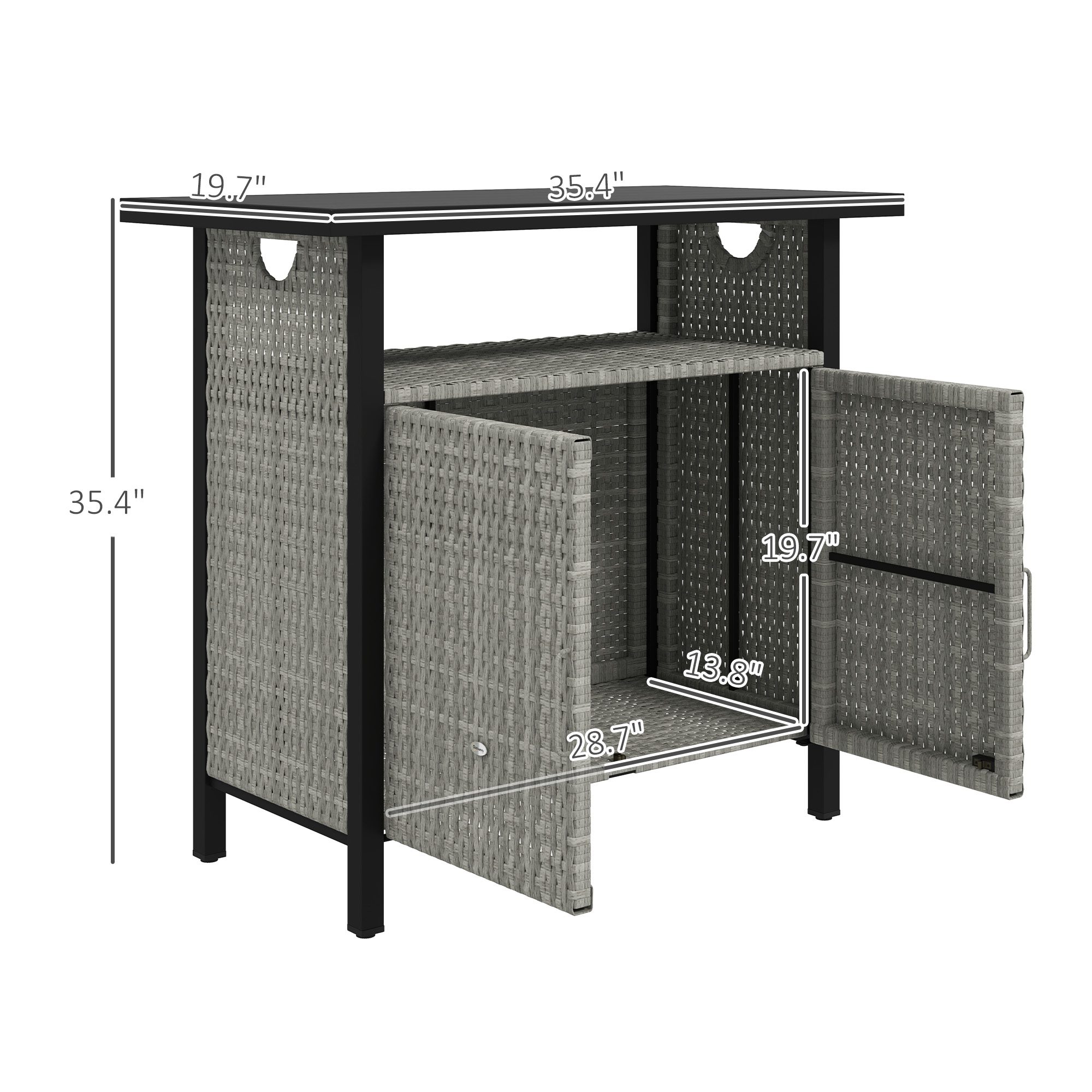 Outdoor Pool Towel Storage Cabinet Organizer, Outdoor Bar Table with Shelf and Cabinet, Pool Towel Holder Pool Valet with Weather-Resistant PE Rattan and Steel Frame, Gray
