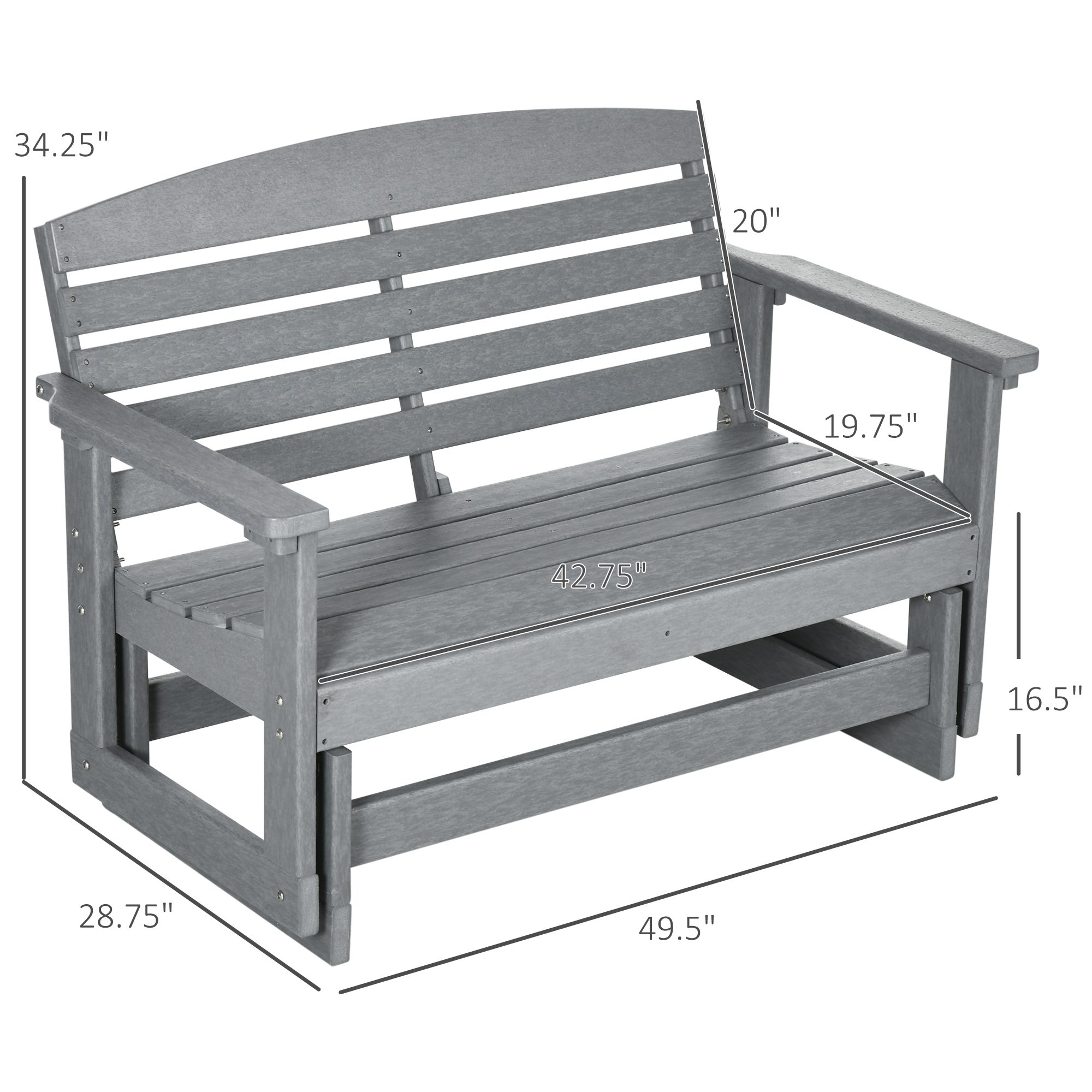 Patio Glider Bench w/ HDPE Slatted Double Rocking Chair, Light Gray