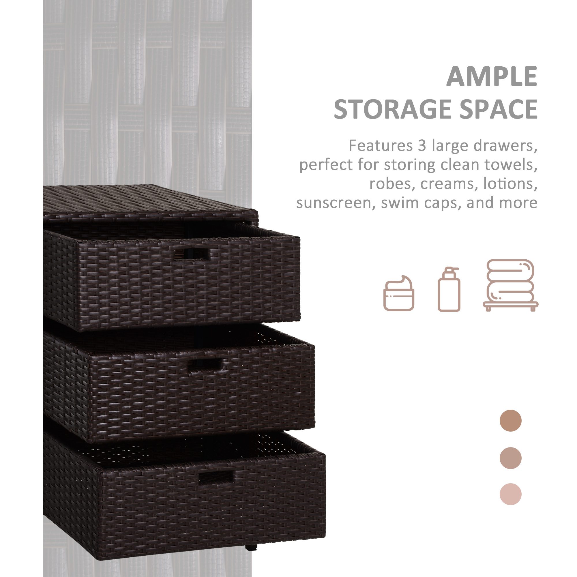 - – Three drawers for storing clean towels, sunscreen, and pool toys
