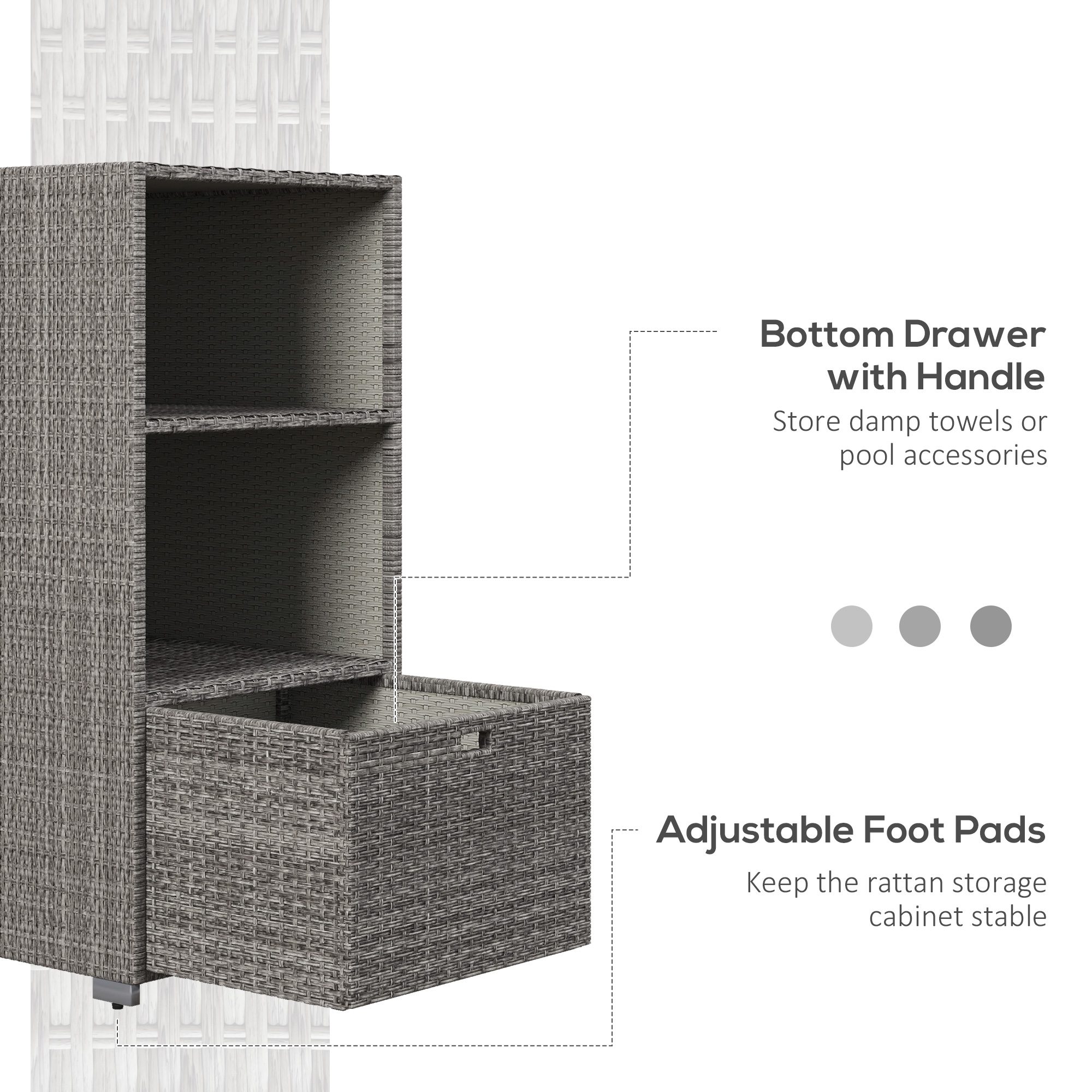 PE Rattan Pool Towel Rack with 2 Storage Shelves Basket Mixed gray