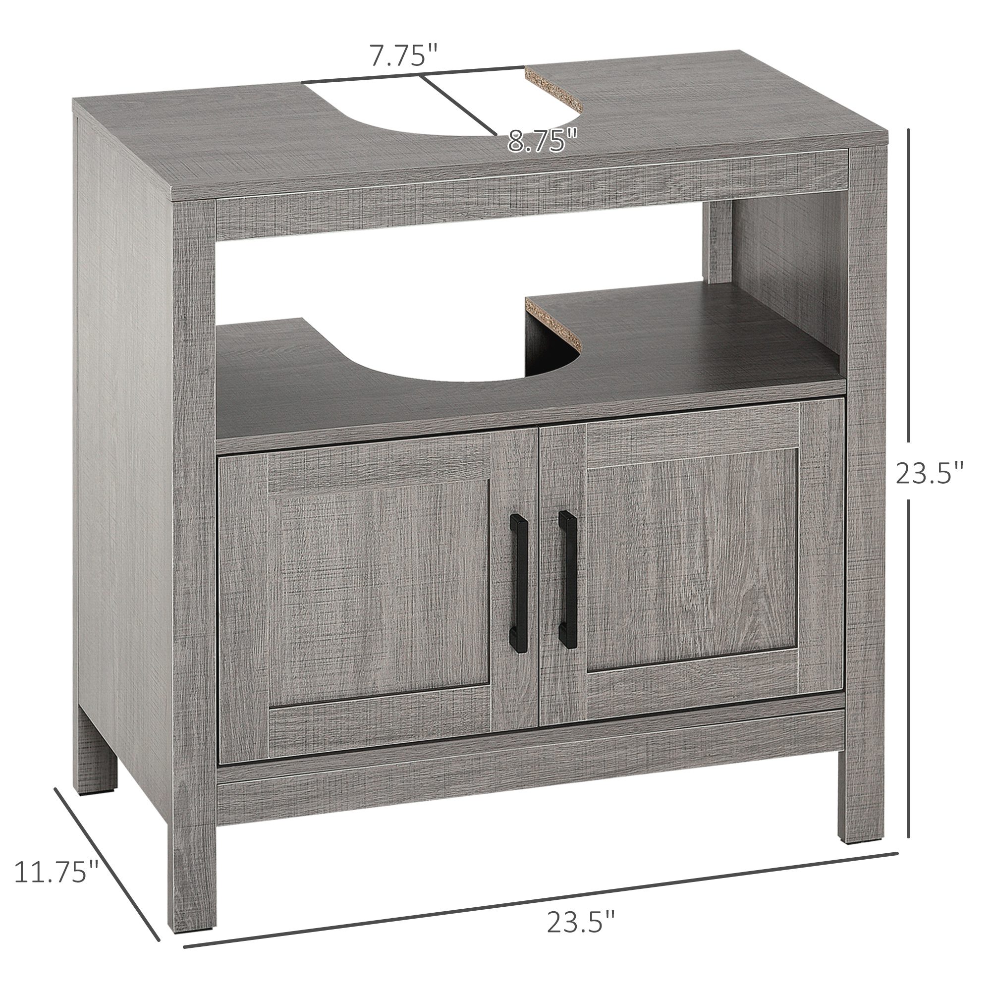 Pedestal Sink Storage Cabinet, Bathroom Under Sink Cabinet with 2 Doors and Open Shelf, Bathroom Vanity, Gray
