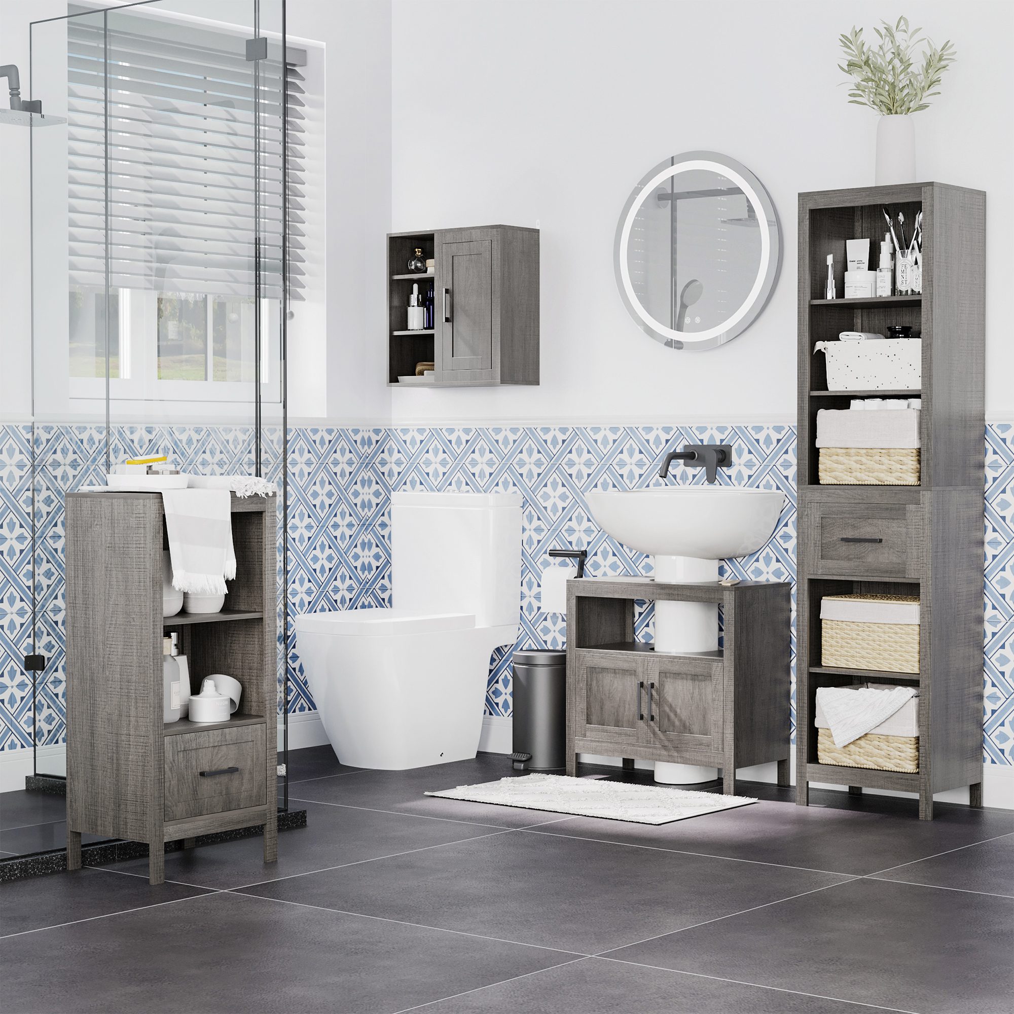 If you need more storage space in your bathroom so you don’t have to store half your stuff in the bathroom and half in the hall this bathroom cabinet from [BRAND NAME] will be your storage-saving grace. This cabinet can store shower accessories, toilet paper, and towels all in a spot. It’s compact enough not to take up much floor space because it goes under the sink. Take back your bathroom space and stop doing the math about what will fit with this floor bathroom cabinet from [BRAND NAME].