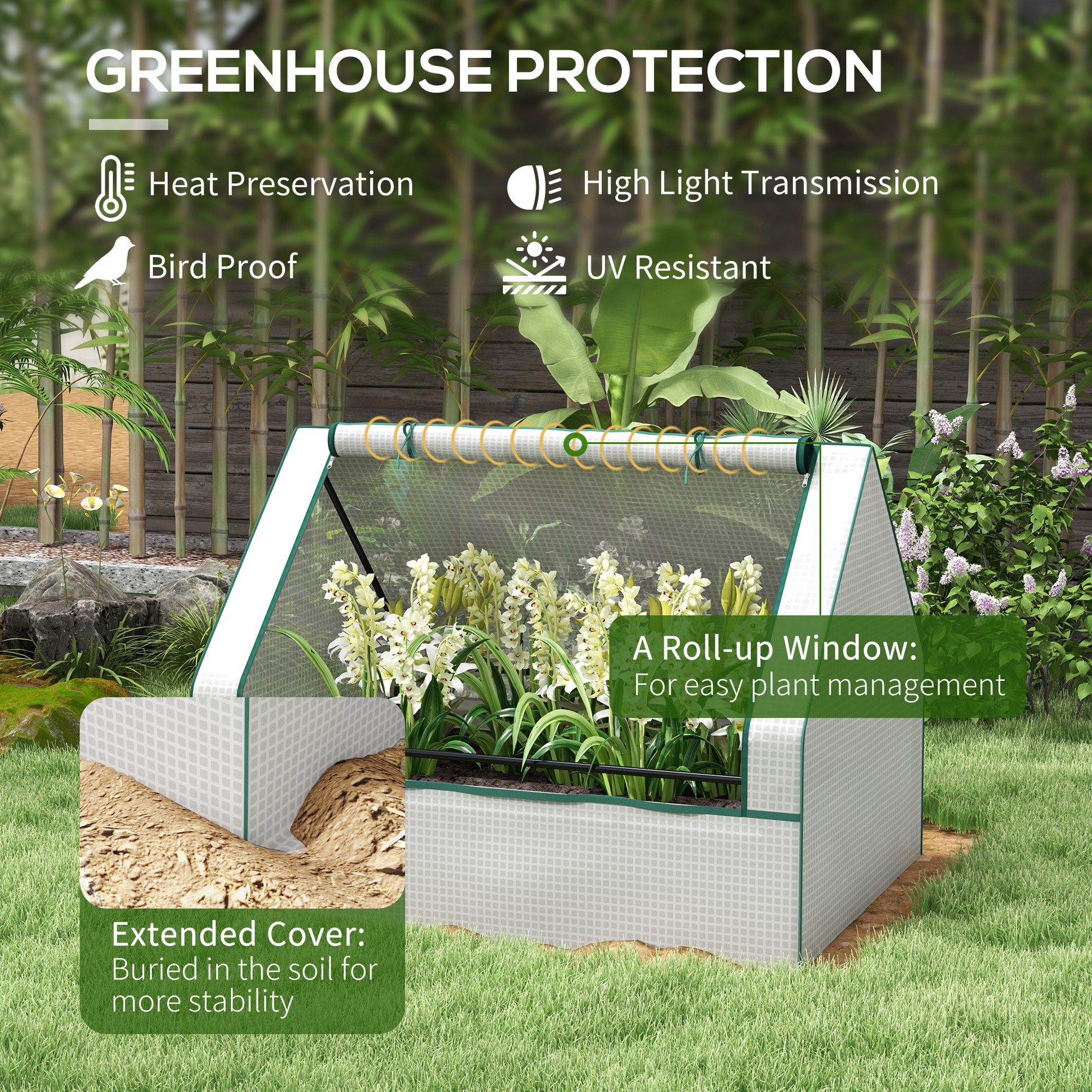 - – Roll-up window for easy plant management