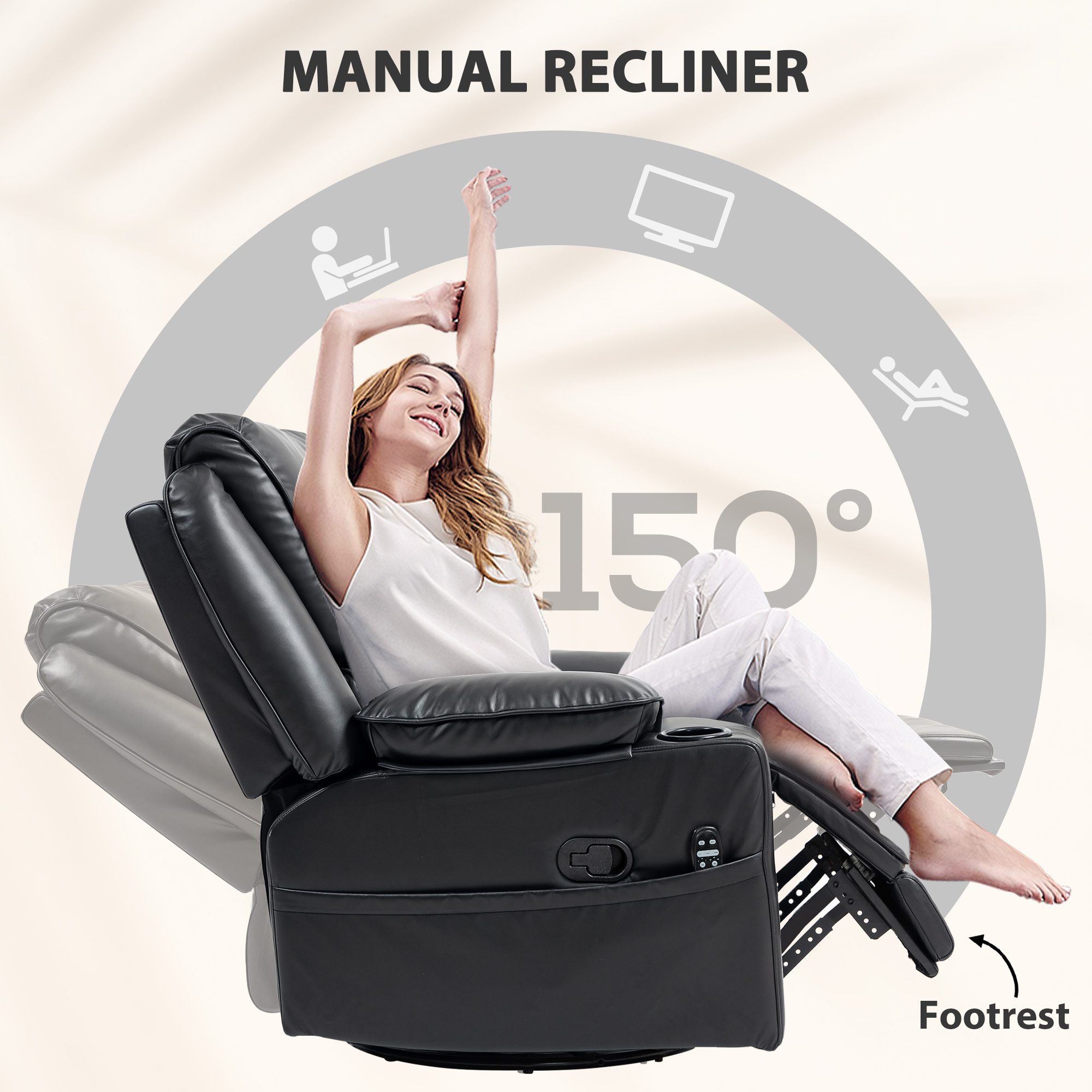 Recliner Massage Armchair with Heat Oversized Swivel Rocker with Footrest Remote and Side Pockets Black