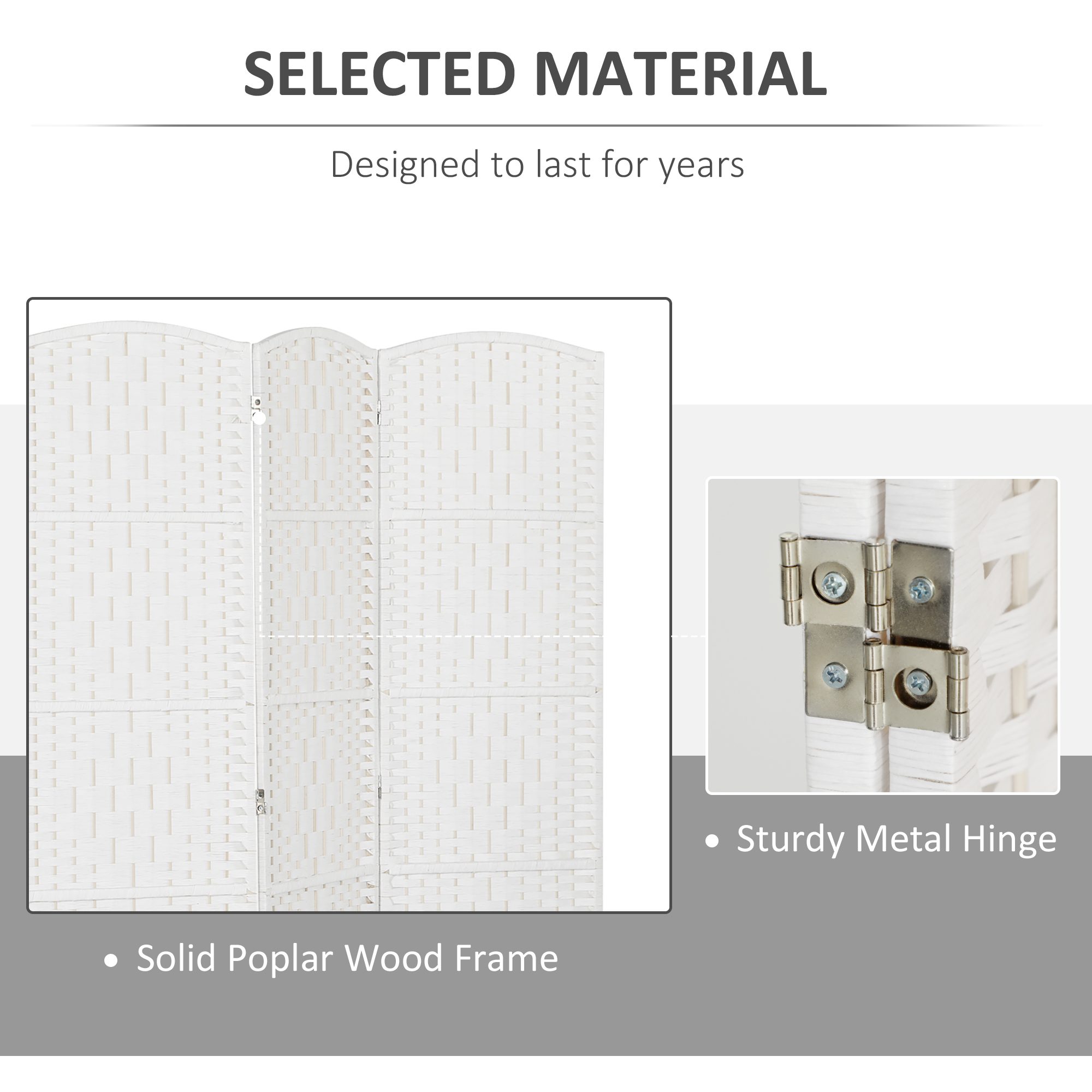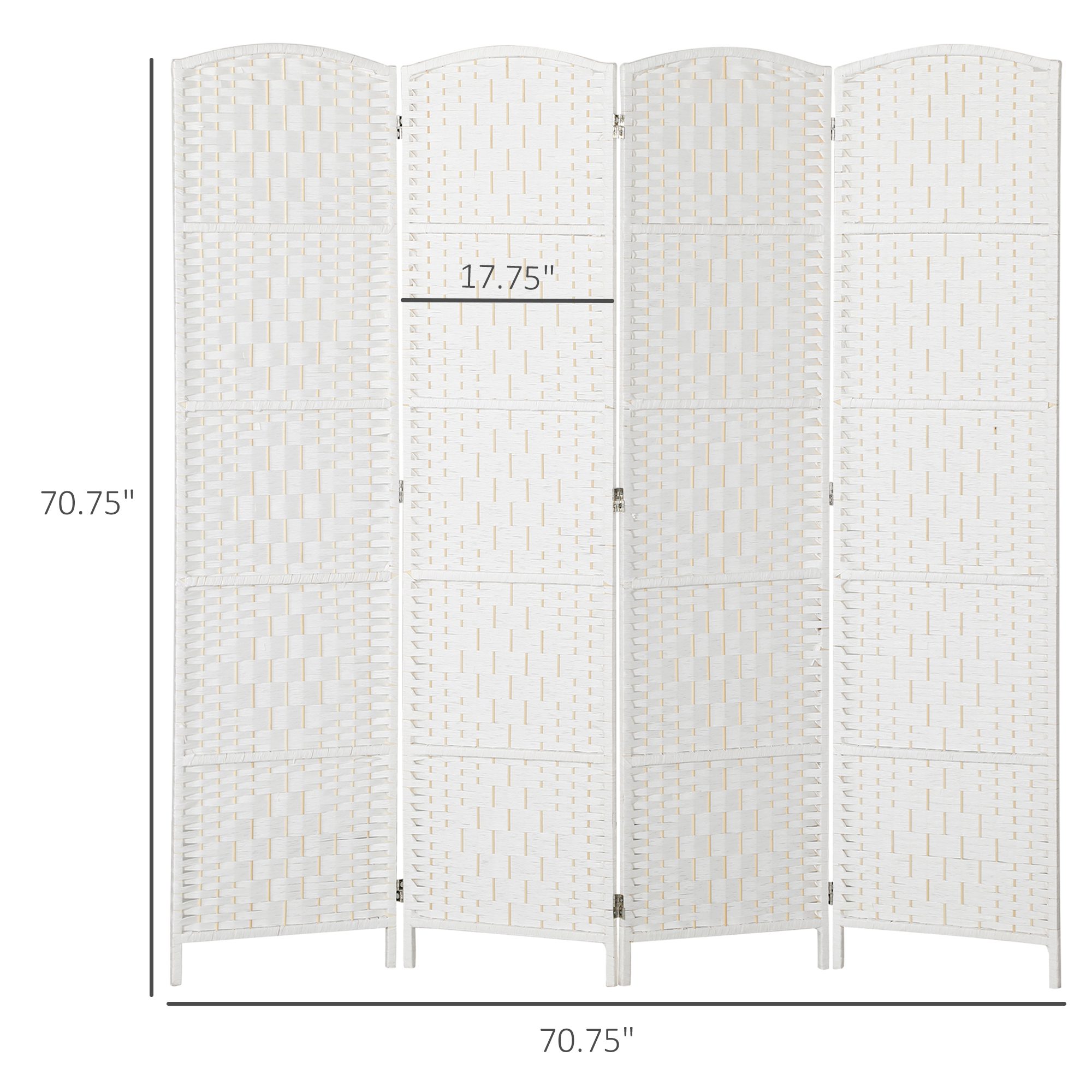 Room Divider, 4 Panel Folding Privacy Screen, 6FT Tall Portable Weave Partition Wall Divider for Bedroom, White