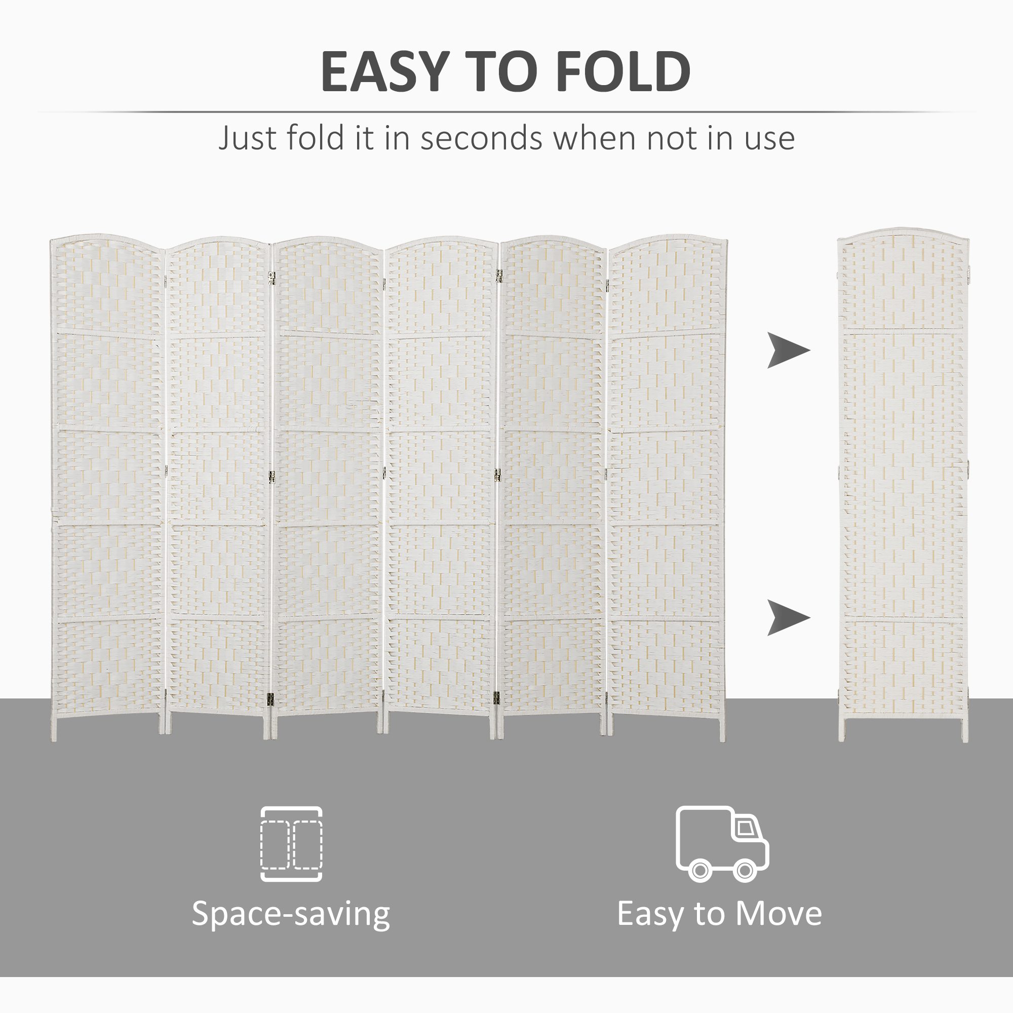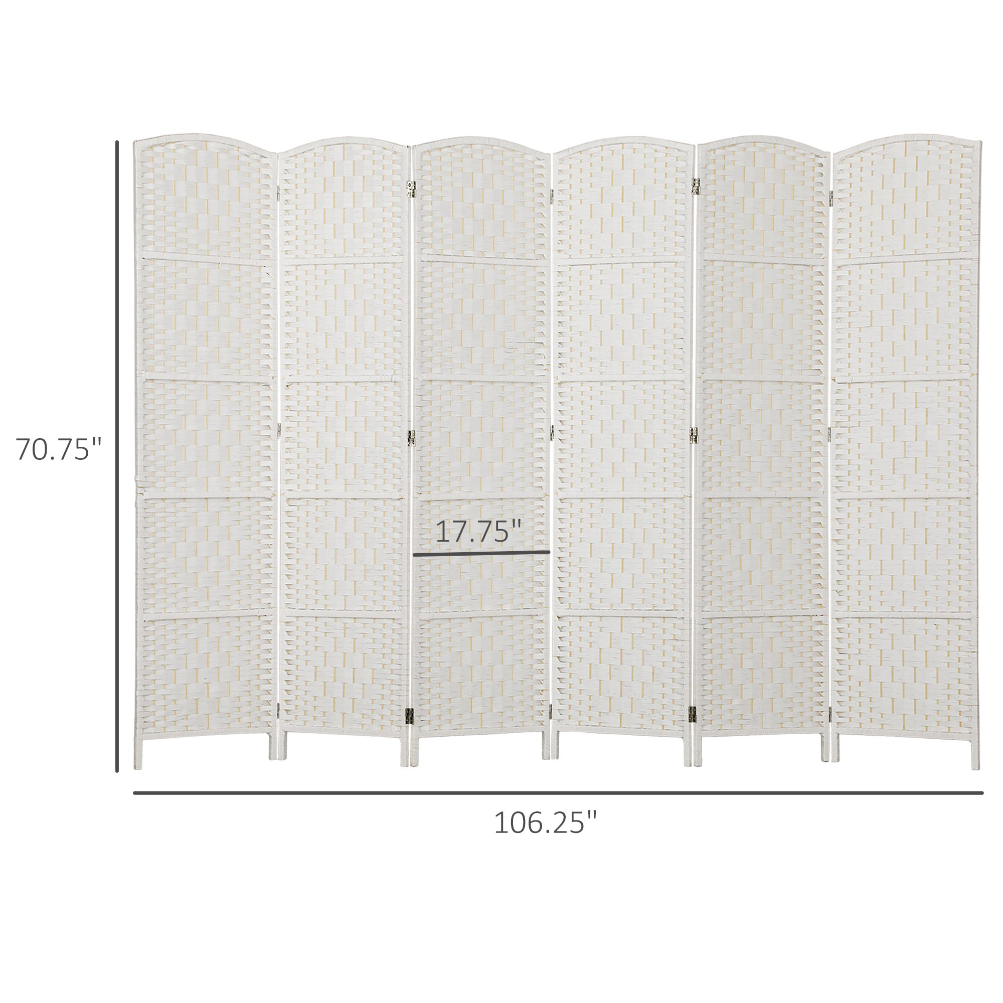 Room Divider, 6 Panel Folding Privacy Screen, 6FT Tall Portable Weave Partition Wall Divider for Bedroom, White