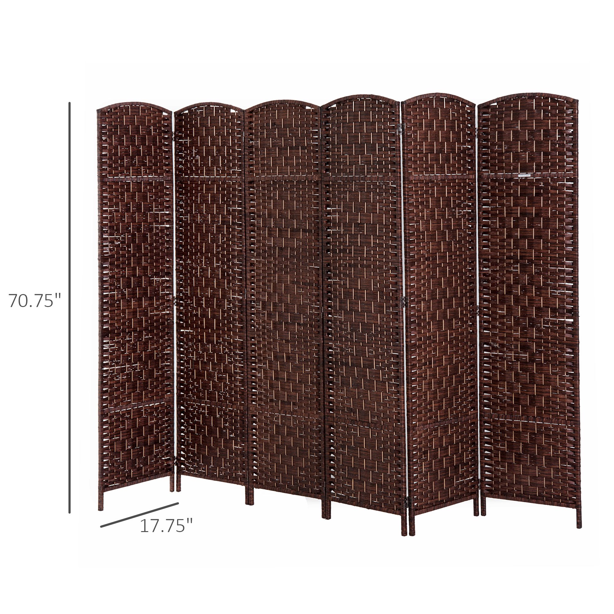 Room Divider, 6 Panel Folding Privacy Screen, 6FT Tall Portable Wicker Weave Partition Wall Divider for Bedroom, Home Office, Brown