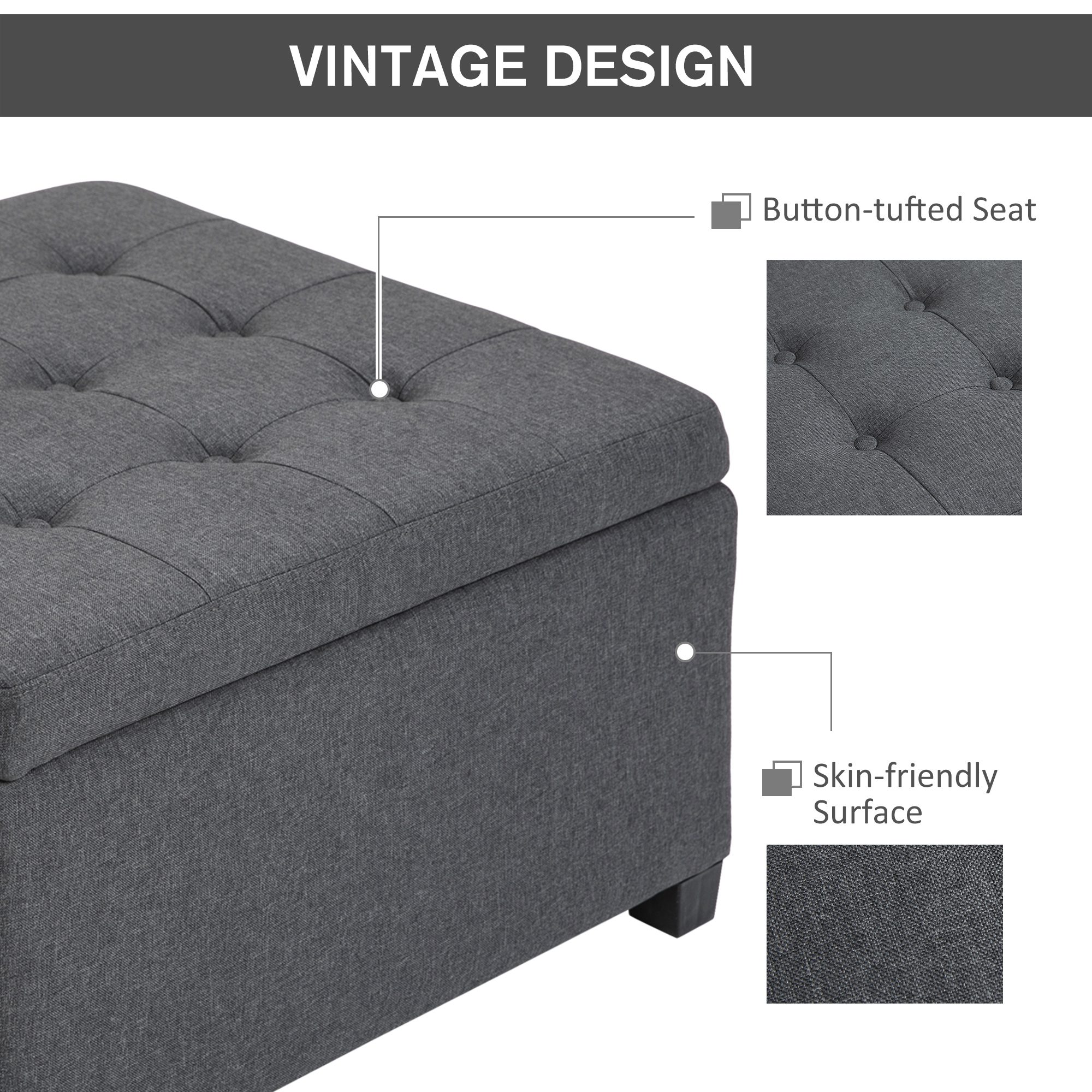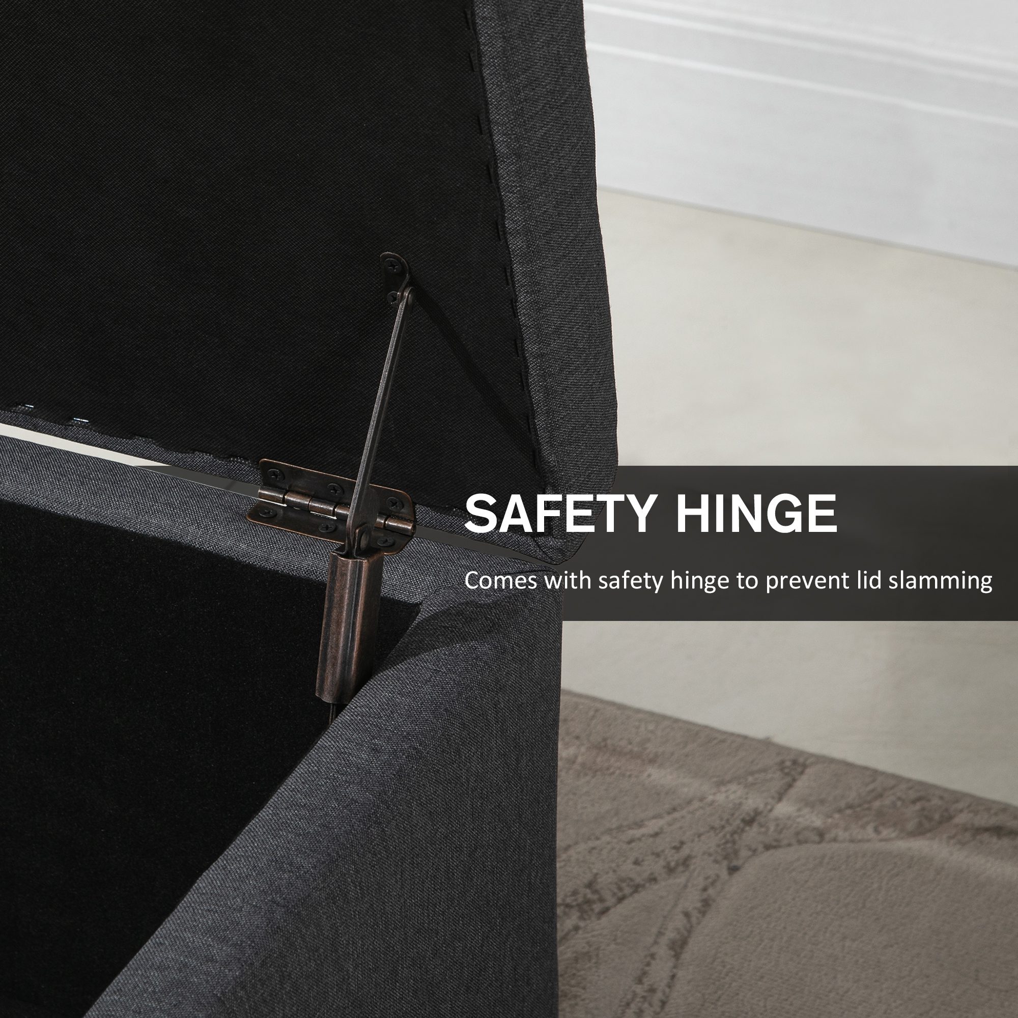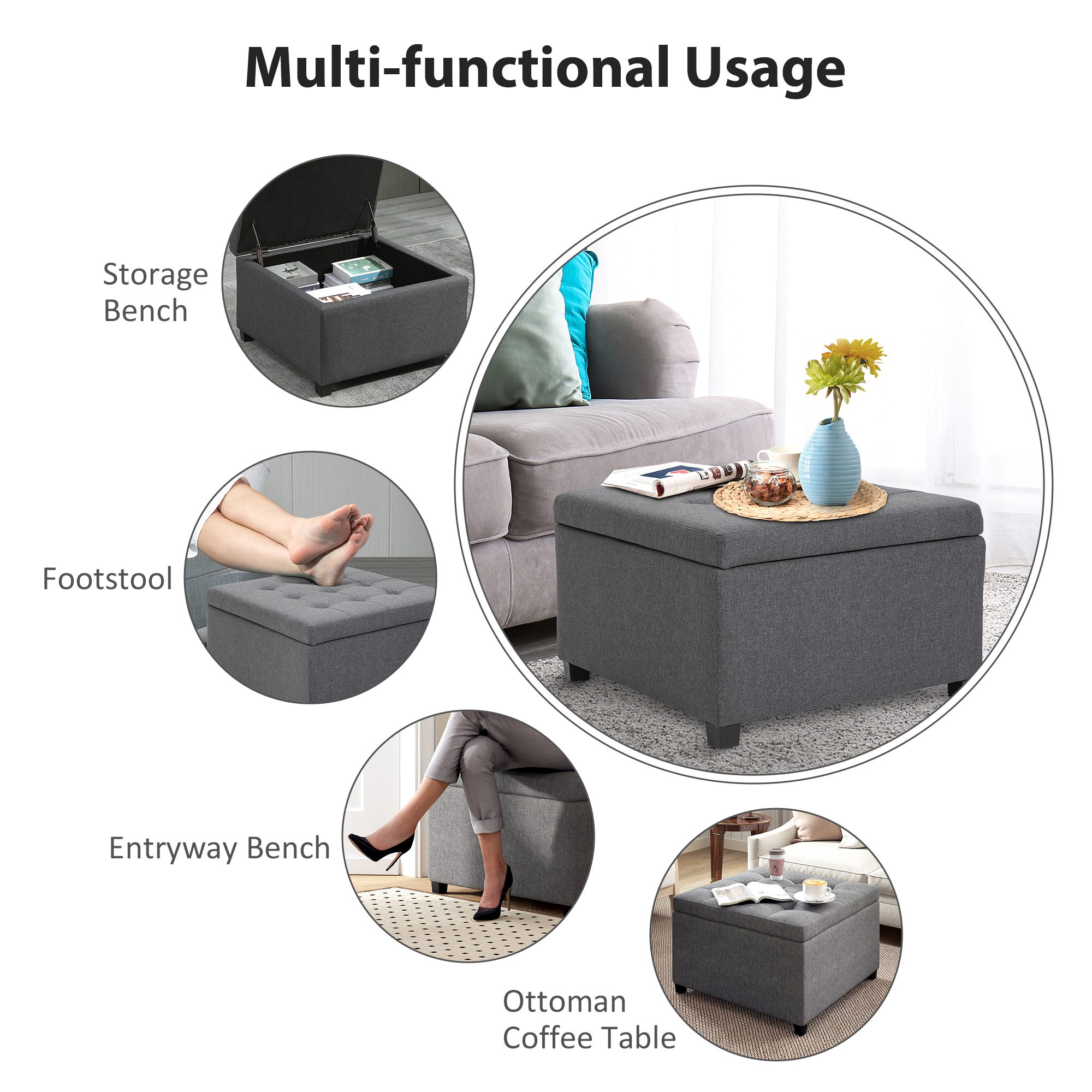 Complete your home decor set with this beautiful storage ottoman from . Breathable linen-touch fabric and button-tufted detail add vintage glamor to your living room. Featuring ample storage space, this storage ottoman is a practical yet classic choice for added seating in the entryway, under the window, or in the living room. The secure hinge on the lid prevents it from slamming onto your fingers. Get extra storage in your living room with this ottoman with storage from .