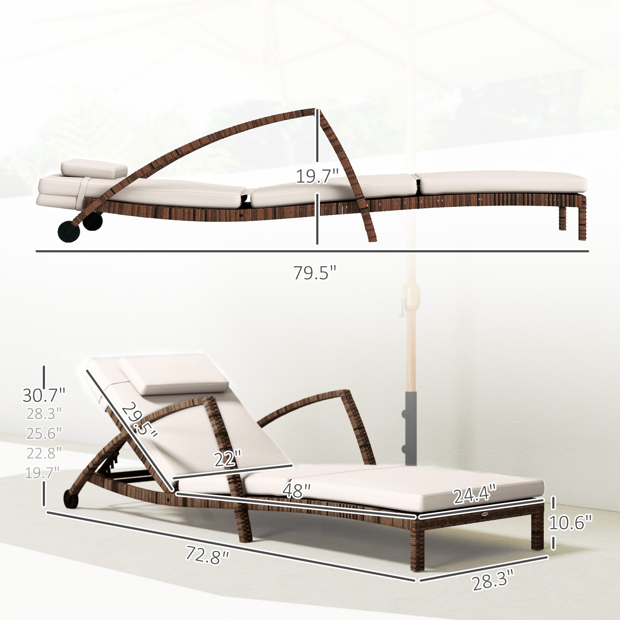 Set of 2 Wicker Chaise Lounge Chair Outdoor Patio Lounger with 5 Adjustable Back, Wheels, Cushion, and Armrests, Beige
