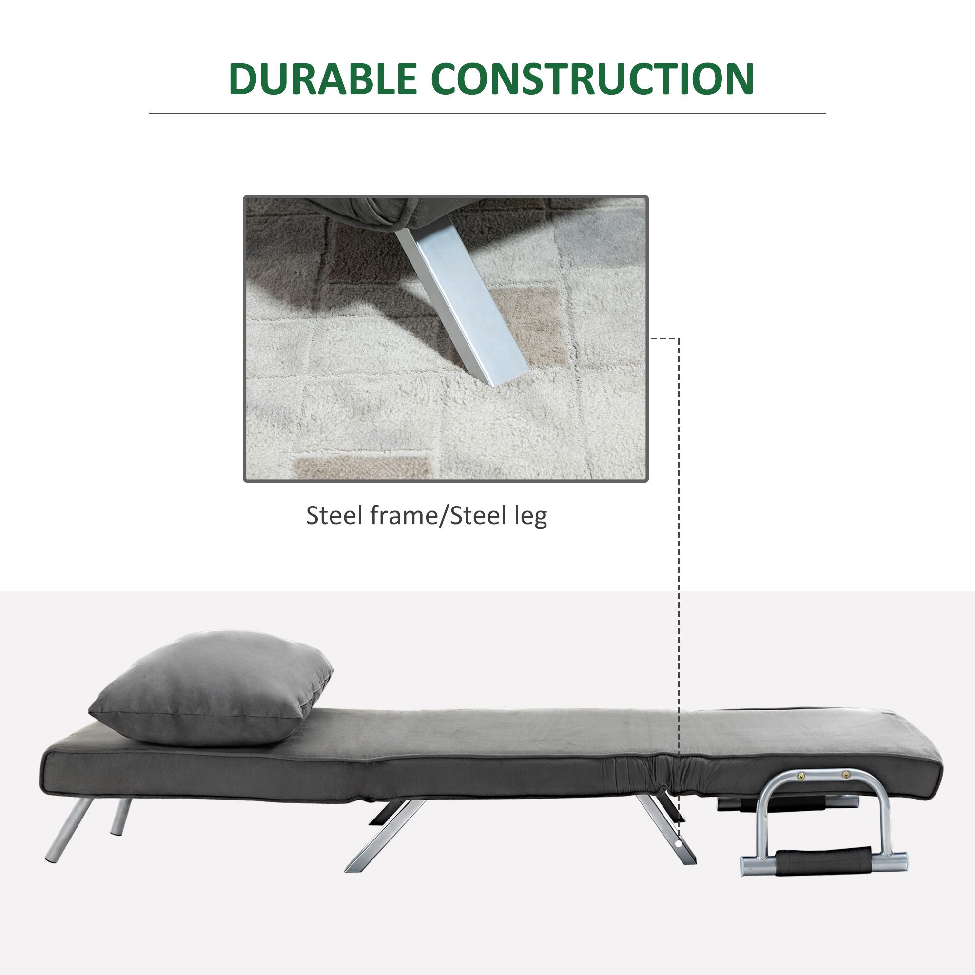 Single Person Folding 5 Position Convertible Sofa Bed Sleeper Chair Chaise Lounge Couch w/Pillow & Steel Frame, Dark Grey