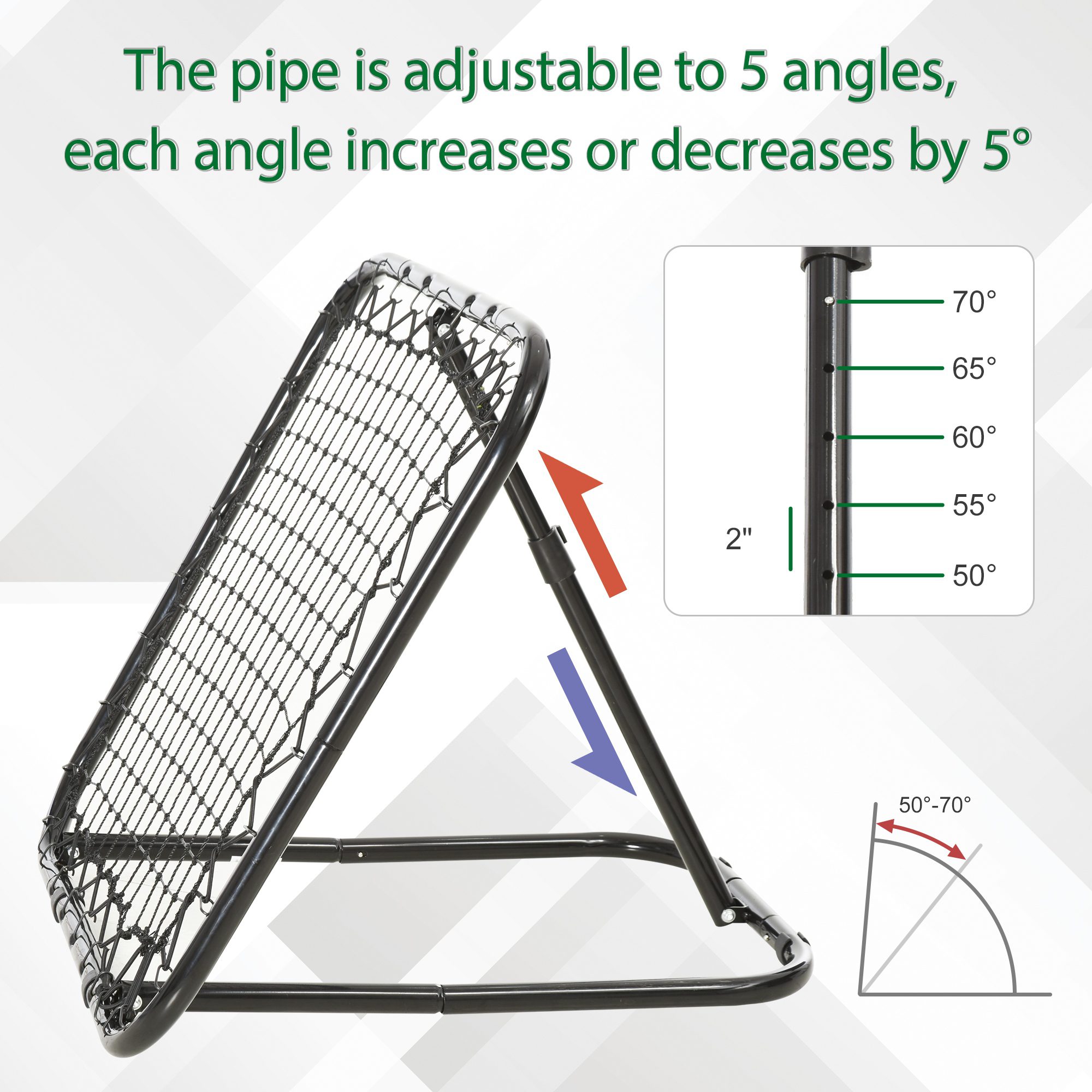 Try out this rebounder net from Soozier, it’s made of powder-coated steel tube and durable PE net, it’s strong enough to be used by both kids and adults. It kicks ball back at a variety of angles for throwing, pitching and fielding practice, perfect training aid for sports including soccer, tennis and cricket. This is a great piece of equipment to help player develop skills in accuracy, power and ball control, and help them to enhance passing, goal keeping, heading and shooting. With the required installation accessories included in delivery, assemble required.