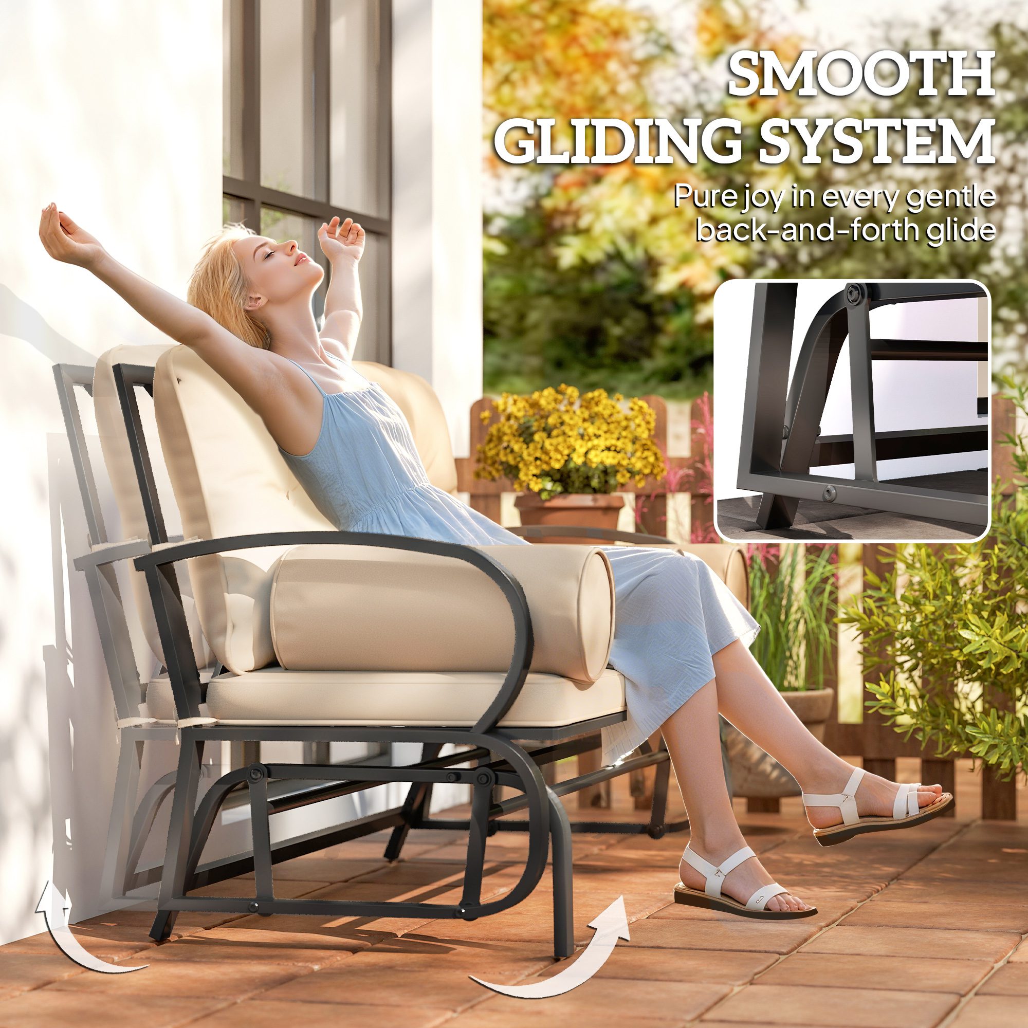 - – Glider bench that offers rocking for two
