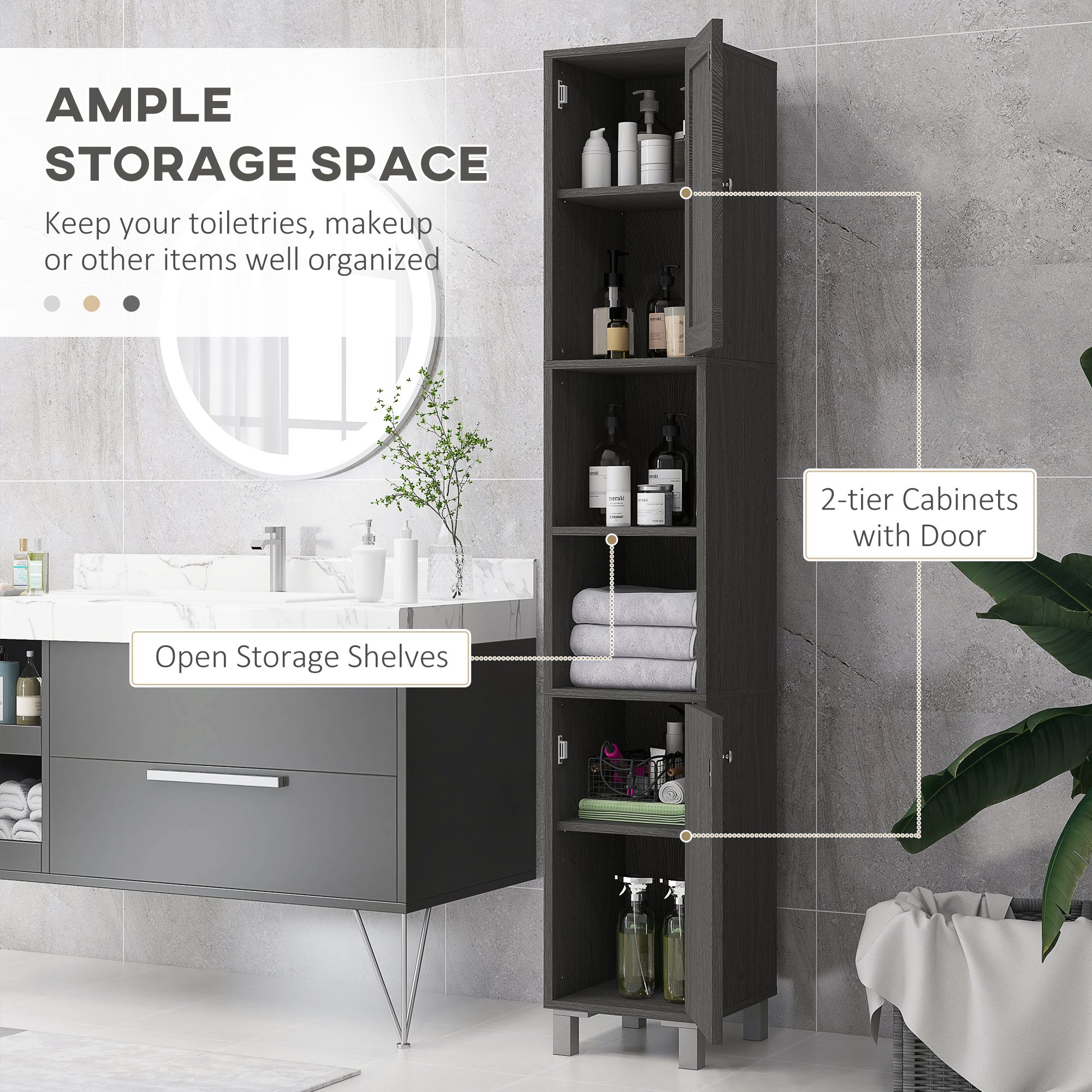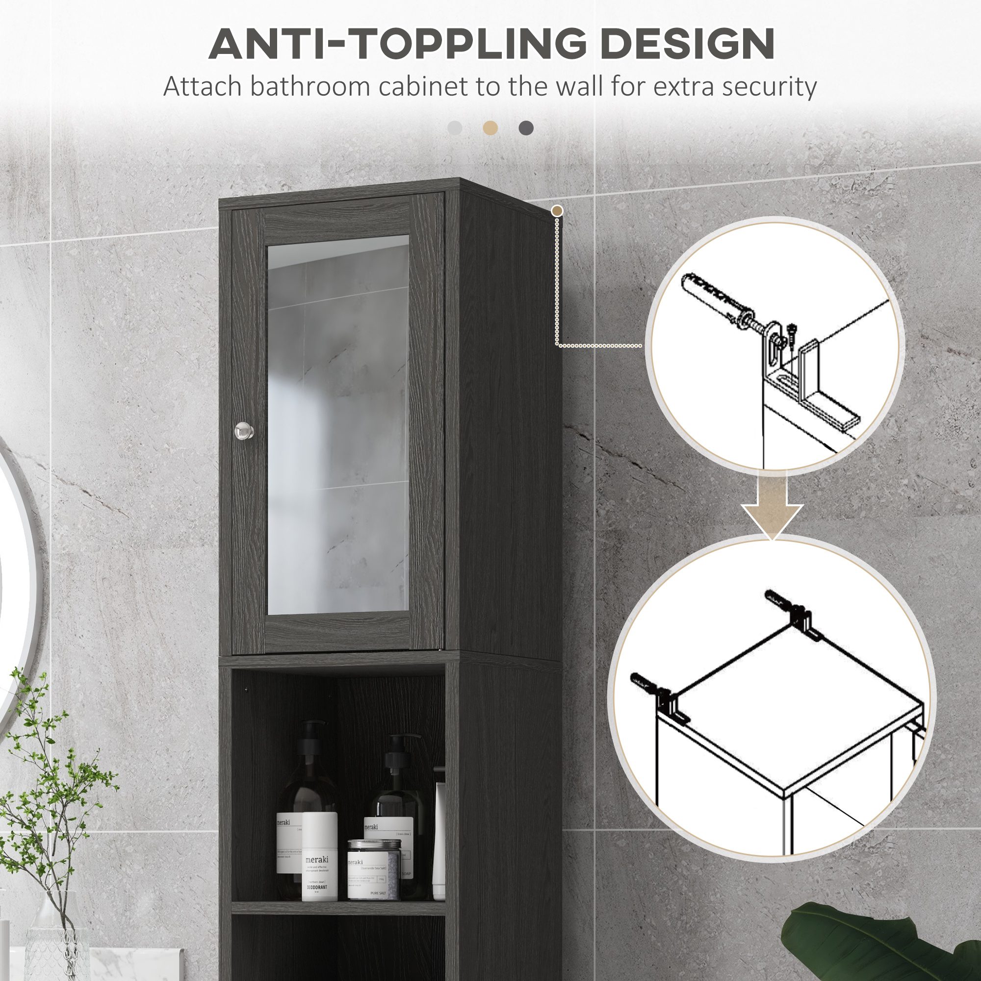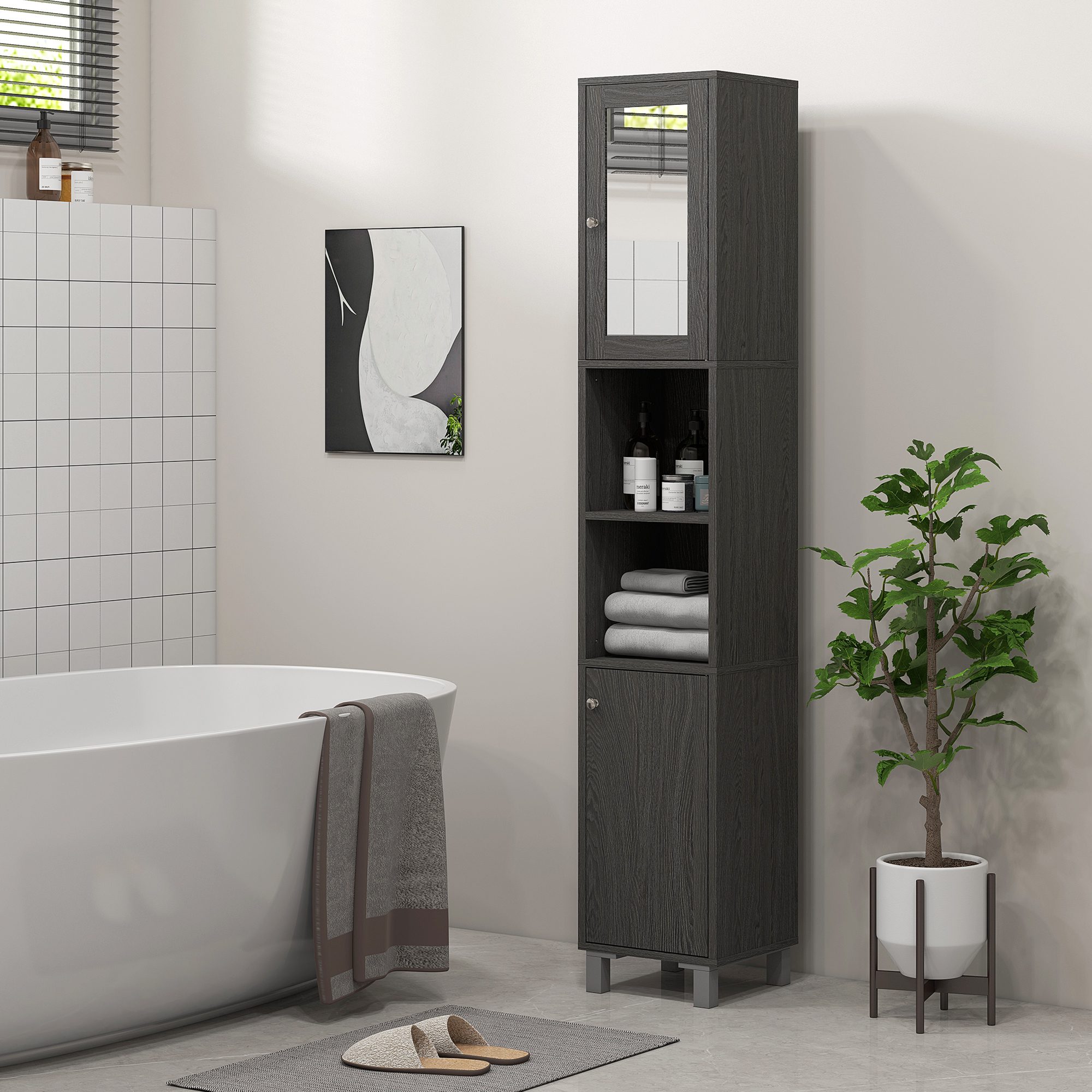 Are you looking for more storage space for your bathroom or entryway? Using two open shelves and enclosed two-tier cabinets featuring an adjustable shelf inside, this bathroom organizer offers ample storage space. This tall bathroom cabinet features a mirror on the top door and provides a place to get dressed up. Enjoy a more organized space with this tall cabinet from [BRAND NAME].