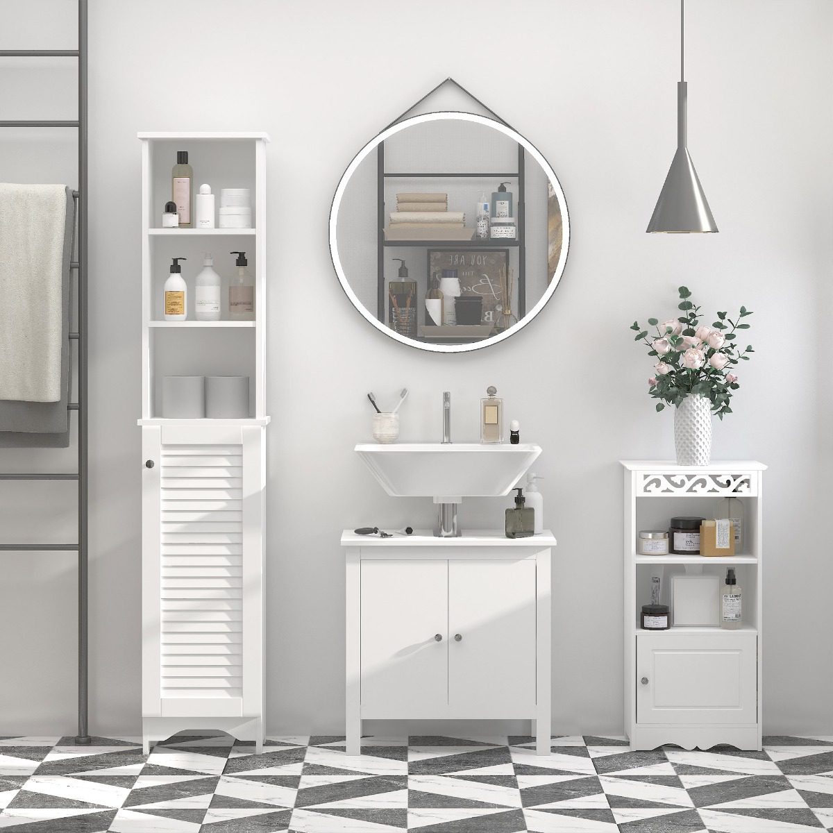 Check out this superbly designed contemporary tall bathroom storage cabinet from ! With a chic shutter door and interior height-adjustable shelving, this small cabinet can easily fit in narrow spaces while providing plenty of storage. The bathroom cabinet is made of P2-grade MDF material that is durable and natural. Furthermore, this freestanding cabinet is versatile, allowing you to place storage in places that are normally unusable due to size. Checkout this freestanding small cabinet from and get back to storage.