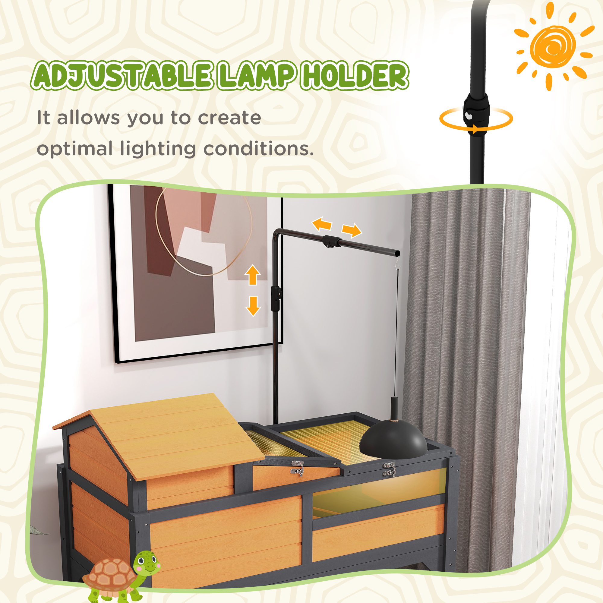 Create an extraordinary haven for your beloved tortoise with our [BRAND NAME] wooden tortoise habitat. Featuring a dual-level design with a main house and run box, complete with a ramp, it provides lots of space for exploration and relaxation. The clear acrylic window and openable top offer easy access and allow you to interact with your pet. The adjustable lamp holder ensures optimal lighting conditions for their well-being. Let’s be honest; your tortoise deserves a too-cool pad, too.