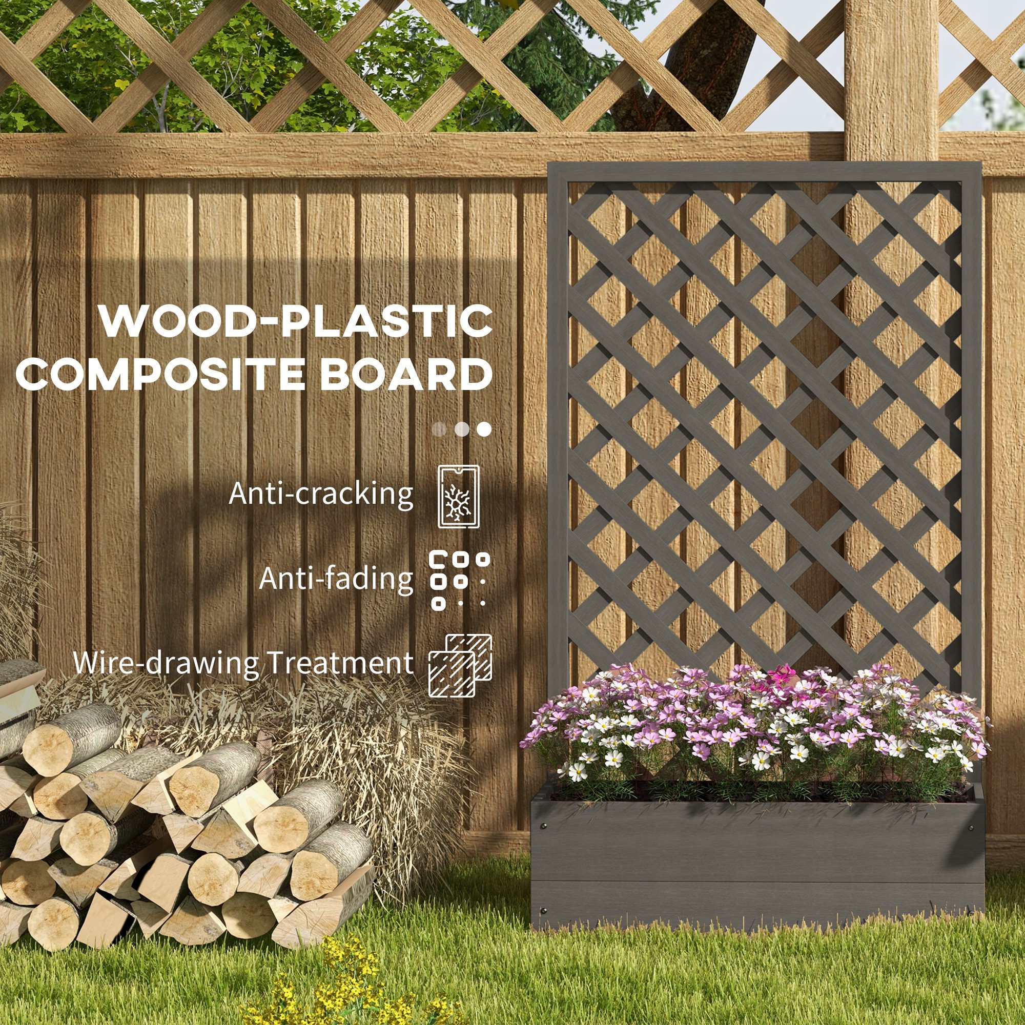 Trellis Planter Box for Climbing Plants, Raised Garden Bed w/ Trellis Lattice for Outdoor Garden, Deck, Backyard, Gray