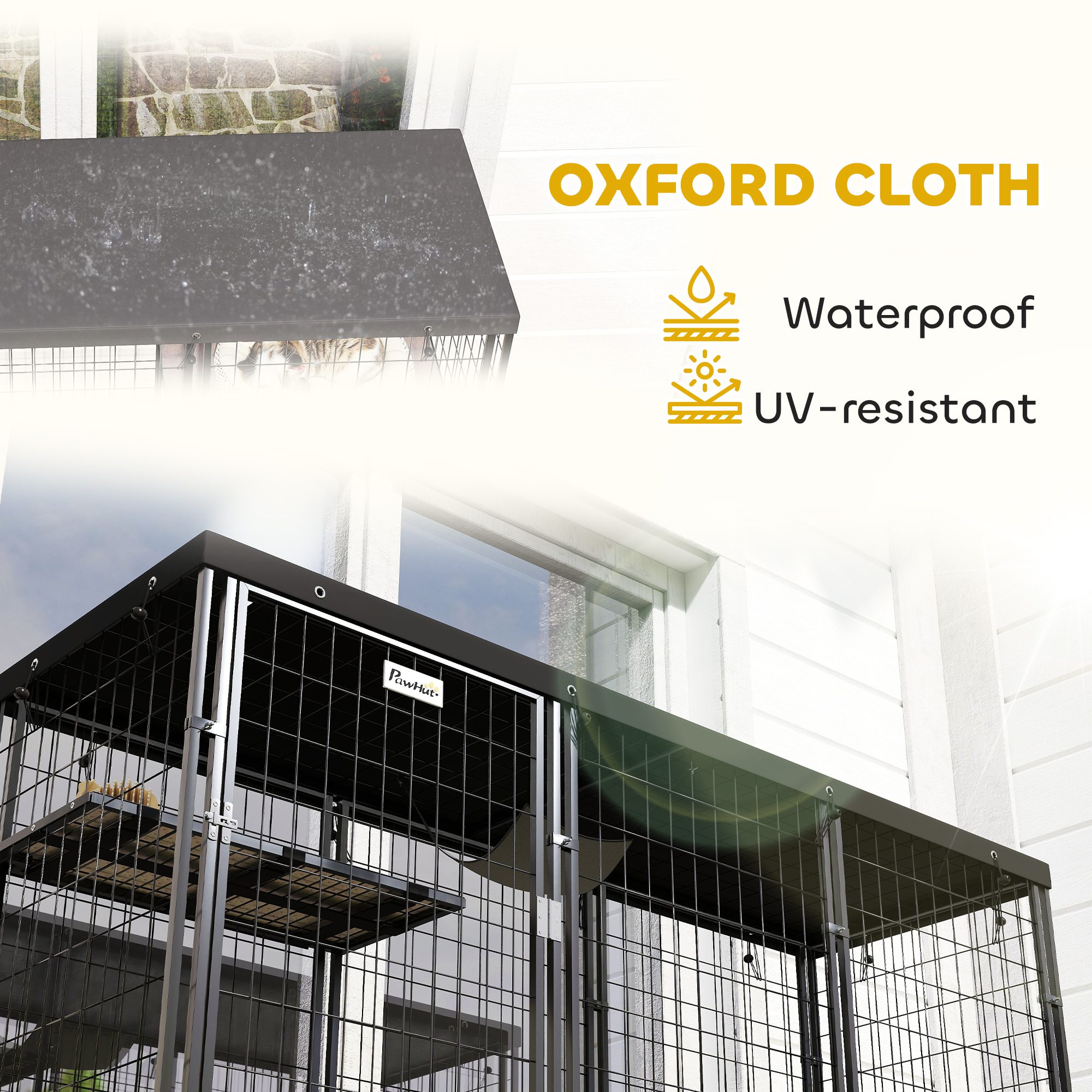 • – Waterproof and UV-resistant cover protects cats from elements