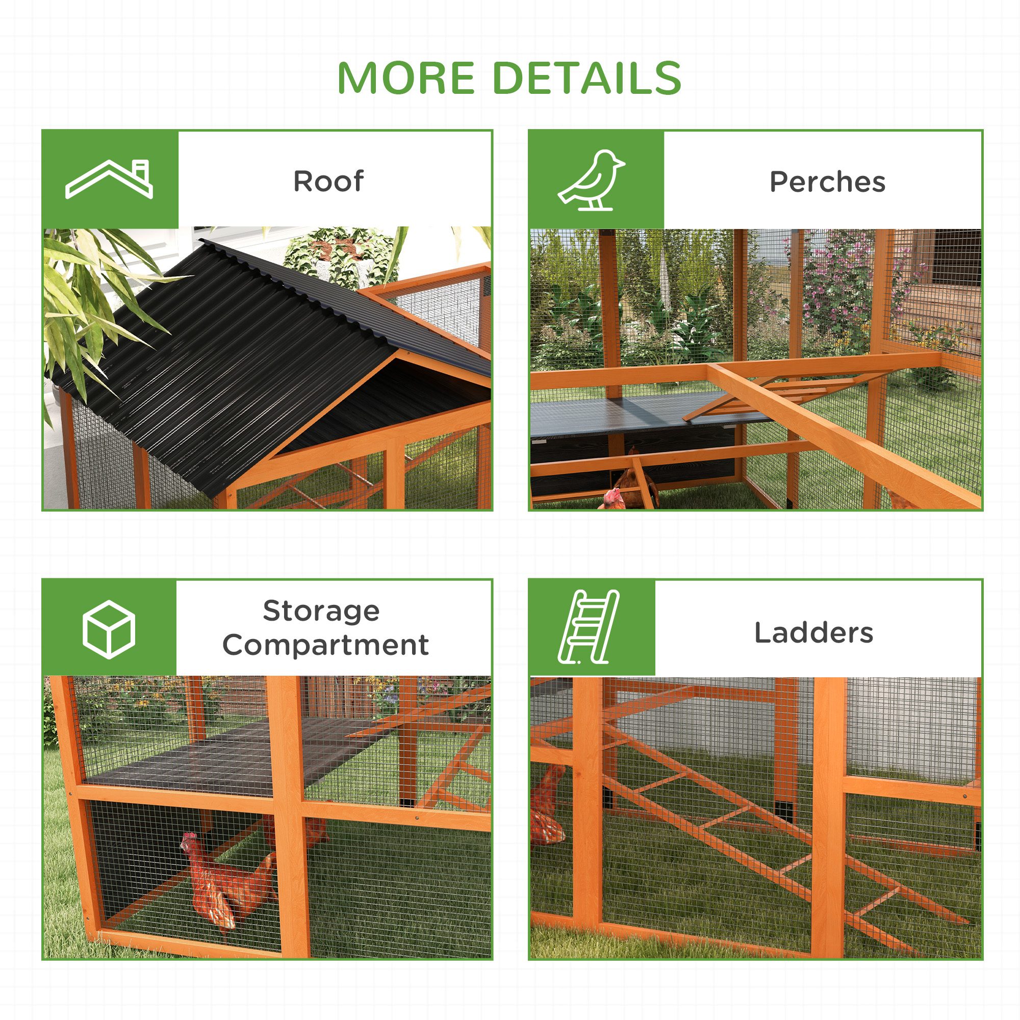 Wooden Chicken Coop Run for 6 – 10 Chickens, Hen House Add-On with Storage, Perches, 141.75″ x 48″ x 61″, Orange