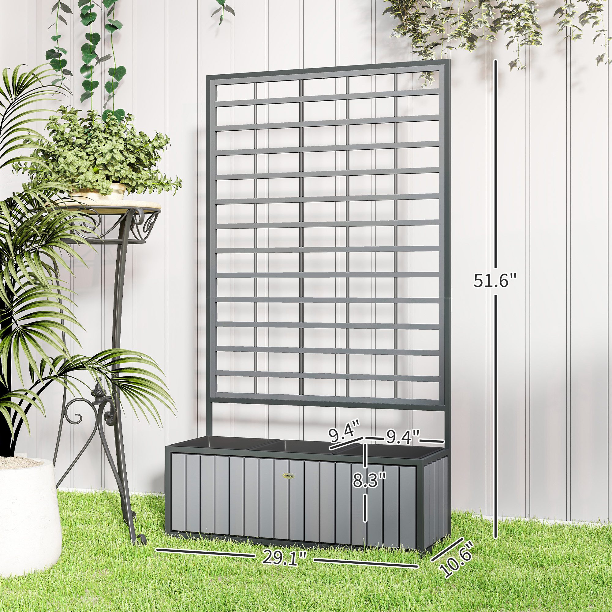 Wooden Raised Garden Bed with Trellis, Removable Pots, for Backyard, Patio, Balcony, 29" x 11" x 52", Gray